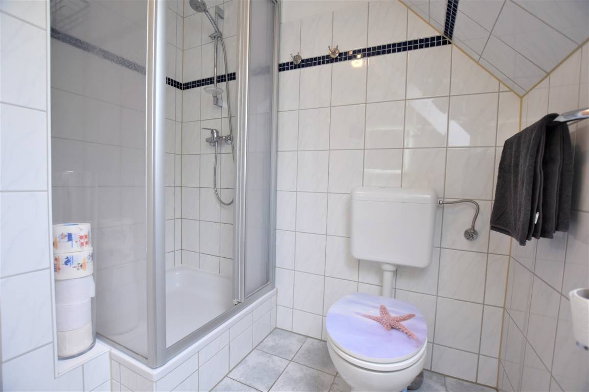 Sie hat 3 Schlafzimmer mit je einem Doppelbett (2x80x200), wobei das eine über eine Treppe zu erreichen ist, also ideal für größere Kinder, die somit Ihr eigenes Reich im Dachgeschoss haben.