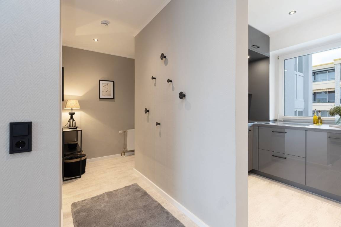 Durch einen kleinen Flur, in dem Sie Ihre Garderobe ablegen können, gelangen Sie ins Herzstück der Wohnung. Der großzügige Wohn- und Essbereich kann mit gemütlicher Sofalandschaft zum Kuscheln punkten. Bei Bedarf kann diese in einen bequemen Schlafplatz umfunktioniert werden. Für Unterhaltung sorgt der Flachbild-TV, über den Sie Ihre Lieblingsmusik streamen können. Von hier aus haben Sie Zugang auf den möblierten Balkon, auf dem Sie bei einem guten Buch entspannen können. Die moderne Küche lässt keine Wünsche offen und Sie entscheiden selbst, ob Sie im Urlaub kochen, oder das breite gastronomische Angebot von Grömitz auskosten wollen. Im separaten Schlafzimmer erwartet Sie ein luxuriöses Boxspringbett (160x200 cm) und lädt zu erholsamen Nächten ein. Nach einer erfrischenden Dusche im hochwertigen Duschbad können Sie beschwingt und erfrischt in den Tag starten. Der WLAN-Anschluss ist für Sie inklusive.
