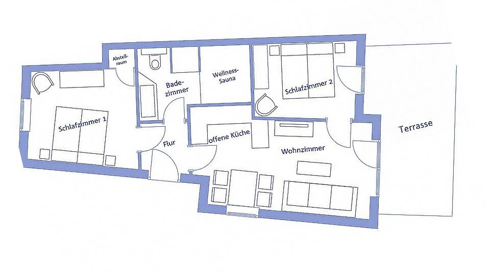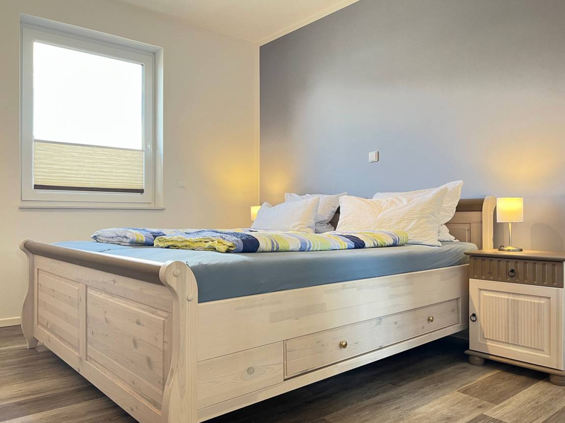 Beide Schlafzimmer sind mit einem Boxspring-Doppelbett, Schrank und einem Flachbild-TV ausgestattet. Aus dem 2. Schlafraum gelangt man direkt auf die 15 qm große Terrasse und beginnt den Tag mit belebender Ostsee-Sonne.