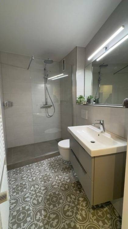 Genießen Sie nicht zuletzt das frisch sanierte Bad mit Walk-in Regendusche und einem großen Spiegel.