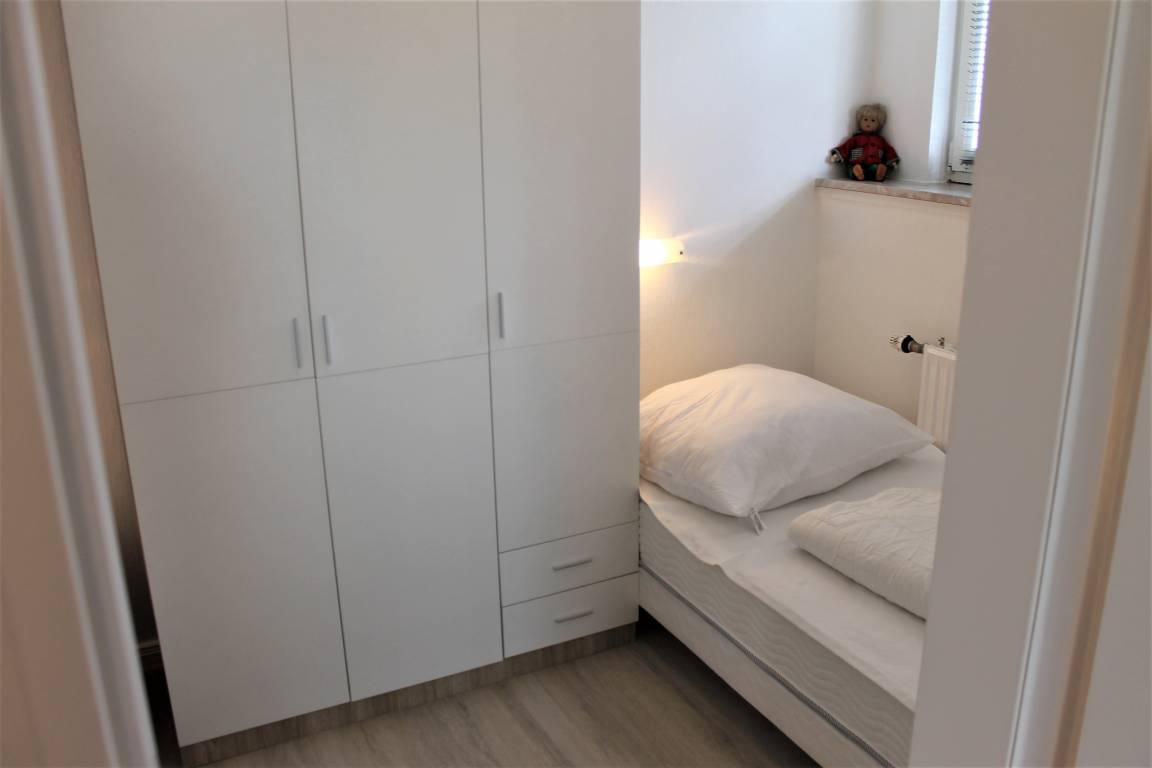 "Haus Barbara" - Die Wohnung Nr. 4 liegt im 1. Stock und ist ca.32m² groß, sie bietet Platz für maximal 4 Personen (2 Erwachsene und 2 Kinder). Die Wohnung besteht aus einem Wohn-/ Schlafzimmer (Schlafsofa Maße 180 x 200 cm) mit einer offenen Küchenzeile und Essplatz. Die Küche ist u.a. mit Gefrierfach, Kaffeemaschine und 2-Plattenherd ausgestattet. Das Kinderzimmer bietet zwei 90er Einzelbetten und das Badezimmer verfügt über eine Dusche. Ein eigener Balkon für die Whg. 4 ist vorhanden.