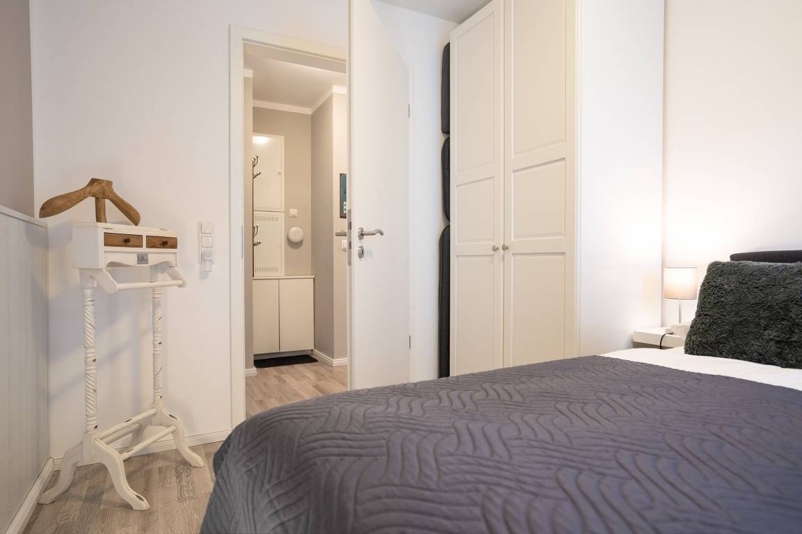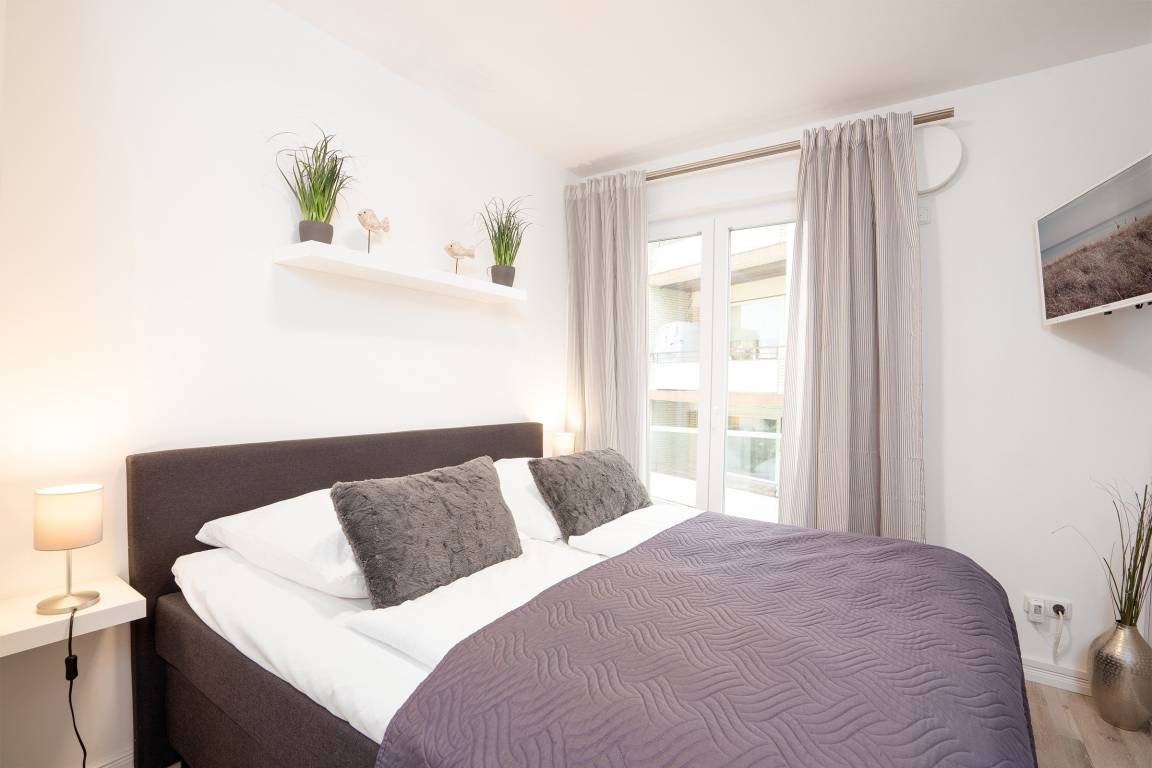 Die Wohnung empfängt Sie mit einer Garderobe für Ihre Jacken und einem Schuhschrank sowie einer Gegensprechanlage. Der geräumige Wohn- und Essbereich ist mit einer großen Sofalandschaft mit Flachbildfernseher, einem Vitrinenschrank im Landhausstil sowie einem massiven Esstisch mit gemütlichen Korbsesseln ausgestattet. Die bodentiefen Fenster sorgen stets für Tageslicht. Die schöne, voll ausgestattete Landhausküche mit vielen Extras grenzt offen an den Wohnbereich, für Kaffeeliebhaber steht sogar eine Nespresso-Maschine bereit. Im modernen Badezimmer mit Fenster erwarten Sie eine bodengleiche Dusche mit Natursteinboden (120x120 cm), ein WC sowie ein Waschtisch und viele Ablagemöglichkeiten. Weitere Highlights wie ein beheizbarer Handtuchhalter und ein beleuchteter Spiegel erwarten Sie ebenfalls. Beide Schlafzimmer wurden mit einem hochwertigen Doppelbett (180x200 cm), einem Kleiderschrank und einem Flachbildfernseher ausgestattet. Für die kleinen Gäste gehört folgendes zur Grundausstattung: Ein Badhocker, ein Toilettensitz, ein Kinderstuhl, ein Kinderreisebett sowie Kinderbesteck und -geschirr. Auch eine Auswahl an Kinderspielen und -büchern ist vorhanden.