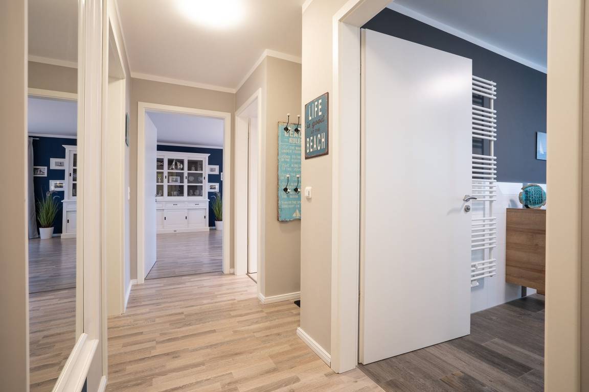 Maritime Gemütlichkeit und moderne Technik erwarten Sie in dieser 3-Zimmer-Ferienwohnung für 4 Erwachsene und 1 Kind.