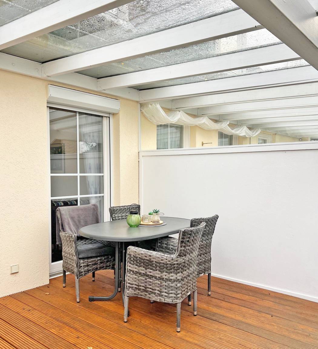 Maisonette-Ferienwohnung für 4 Personen, ruhig gelegen, in nur wenigen Minuten am Strand, überdachte Terrasse mit Essplatz und Sonnenliege.