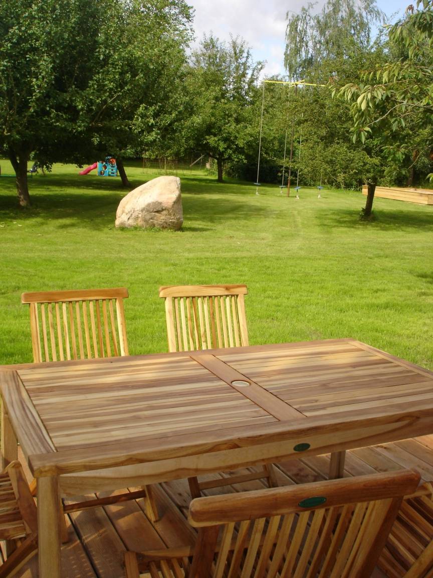 Alle Urlauber, die sich für ein Ferienhaus entscheiden, bekommen das eigene Reich im Schwedenstil und mit komplett eingerichteter Küche mit Mikrowelle, Backofen und Spülmaschine zur Verfügung gestellt. Auch das Wohnzimmer bietet mit Sat-TV, DVD-Player sowie WLAN und Schwedenofen moderne Bequemlichkeit. Bei schönem Wetter lockt eine große Holzterrasse mit gemütlichen Gartenmöbeln und Grillkarmin.