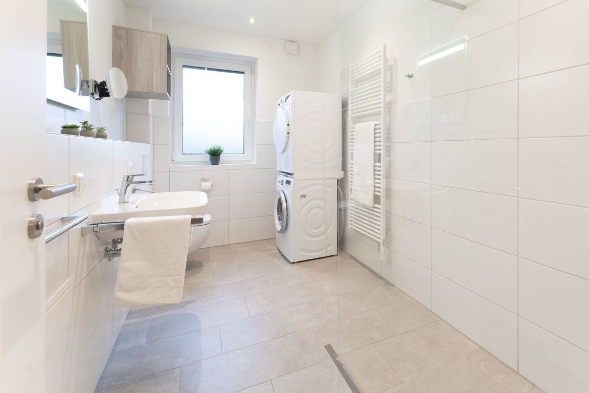 Ein PKW-Außenstellplatz ist für Sie reserviert. Zur privaten Nutzung gibt es im Badezimmer eine Waschmaschine und einen Trockner und für die kleinen Gäste steht ein kostenfreier Kinderhochstuhl zur Verfügung.