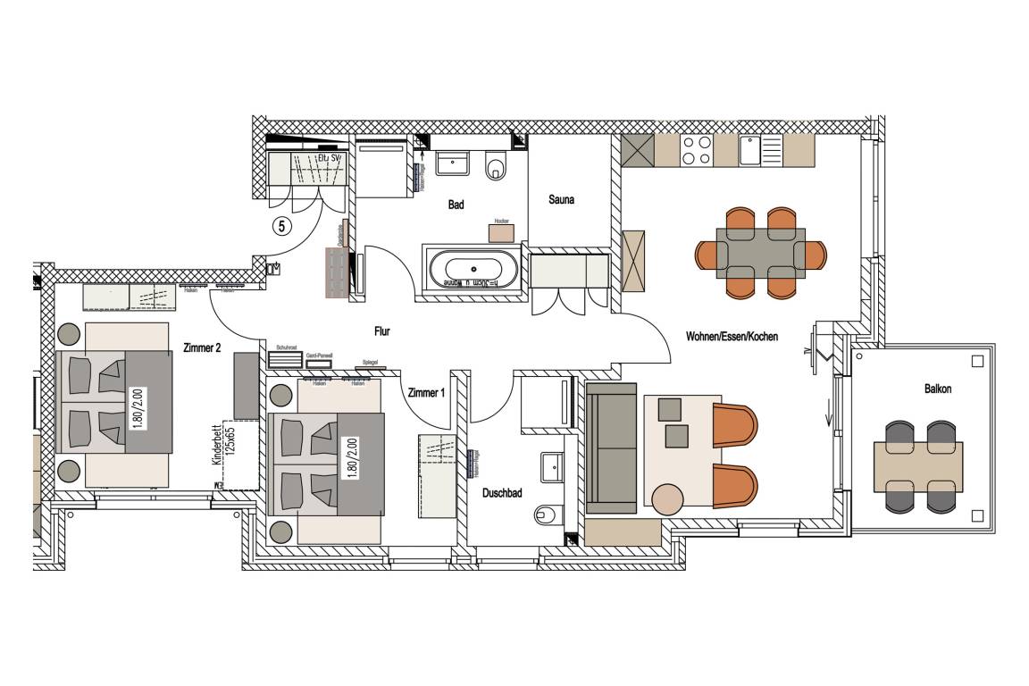 90 m² Ferienwohnung ∙ 2 Schlafzimmer ∙ 4 Gäste