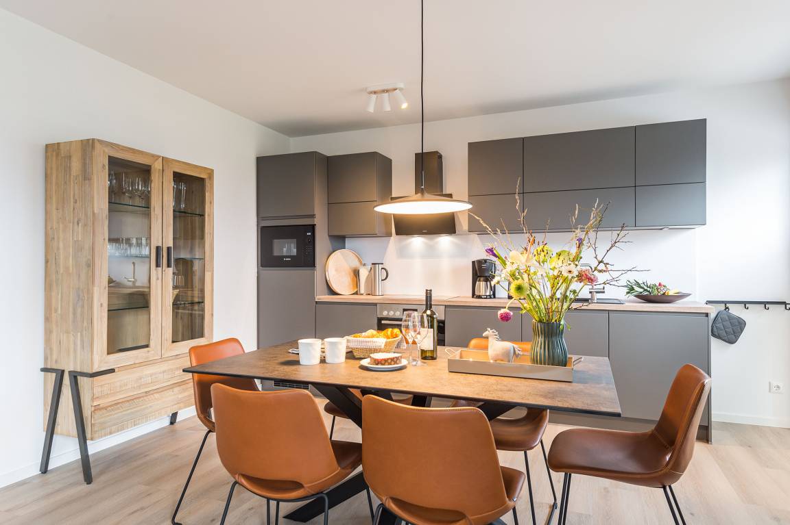 Sie ist für bis zu 4 Personen buchbar (2 Schlafzimmer mit Doppelbetten 180 x 200 cm) (der angegebene Preis bezieht sich immer auf 2 Erwachsene und 2 Kinder, extra Personen können ggf. auf Anfrage dazu gebucht werden) und verfügt über eine gehobene 5-Sterne-Ausstattung: 2 Badezimmer, 1 Sauna, 1 Whirlwanne sowie 1 Balkon (frontaler Meerblick). Die Küche ist komplett ausgestattet und bietet einen großen Esstisch für bis zu 6 Personen. Zudem gibt es einen Geschirrspüler, einen Kühlschrank inkl. Gefrierfach, eine Mikrowelle sowie einen Waschtrockner. Im Wohnbereich erwartet Sie ein 50-Zoll-Smart-TV sowie der Zugang zum Balkon. Der Balkon ist ebenfalls mit einem Esstisch ausgestattet und bietet einen herrlichen, frontalen Blick auf die Ostsee. Selbstverständlich bieten wir schnelles und kostenfreies WLAN sowie einen PKW-Stellplatz direkt am Haus. Auf den hauseigenen Parkplätzen stehen Ihnen E-Auto-Ladegeräte (Wallboxen) zur Verfügung (gegen Gebühr). Aufgrund der Allergiker gerechten Ausstattung sind Haustiere nicht erlaubt.