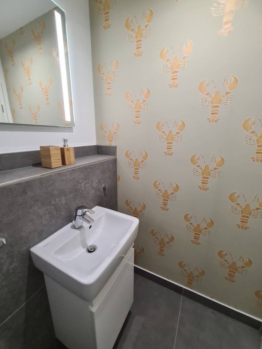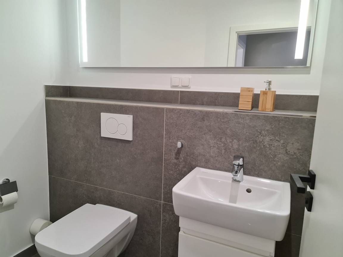 Vom Flur geht das gut geschnittene, moderne Gästebad ab.