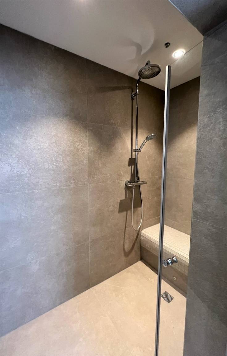 Dazu gehört das luxuriöse Ensuite-Masterbad mit bodentiefer, geräumiger Dampfdusche sowie ein kombinierter Waschtrockner.