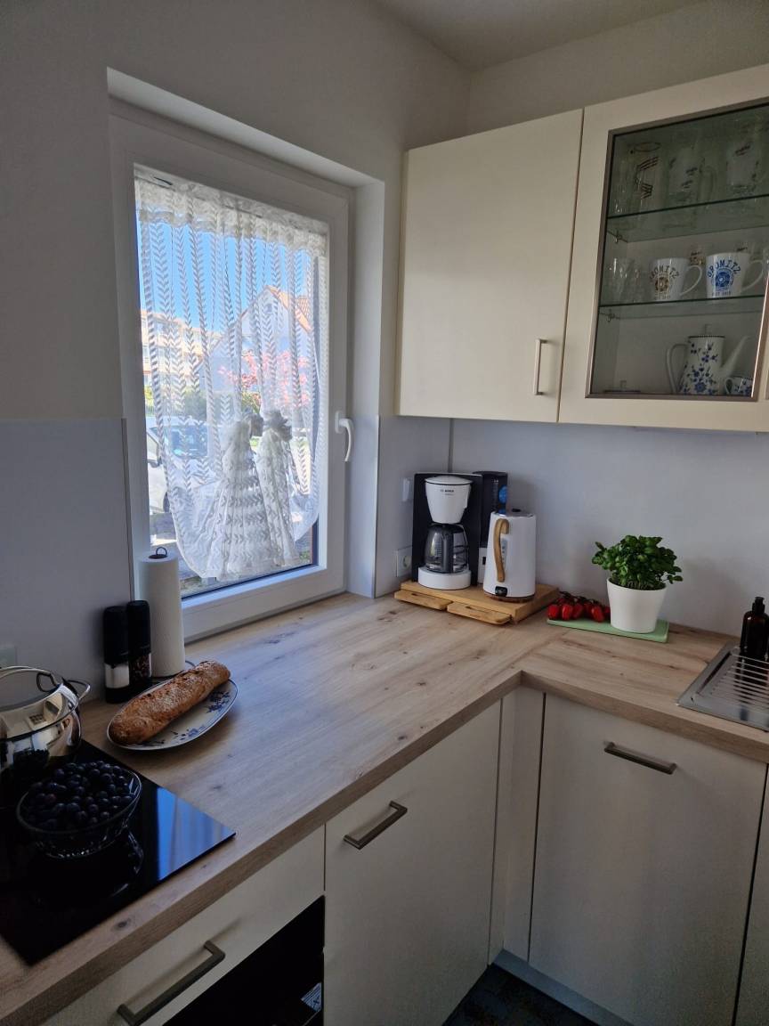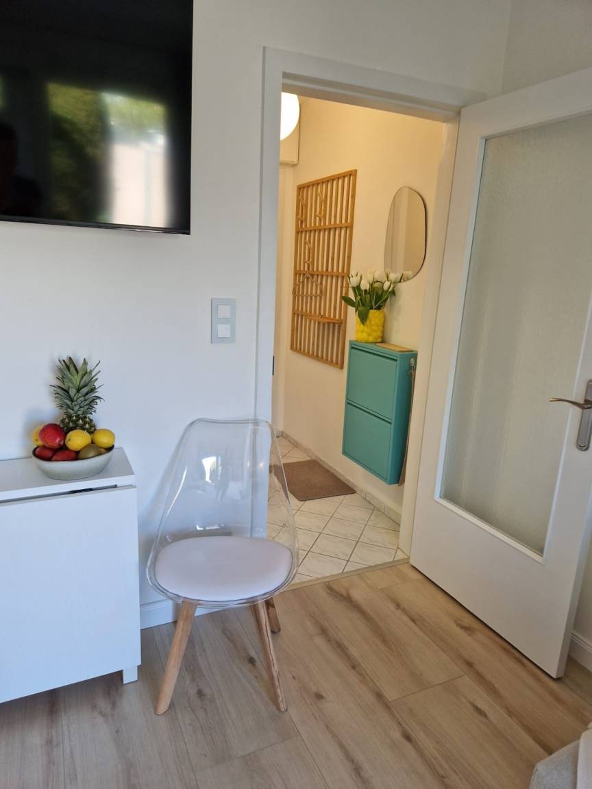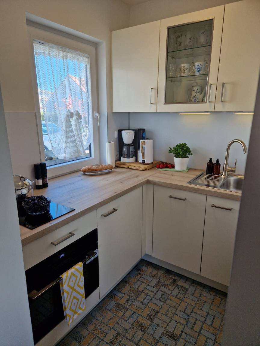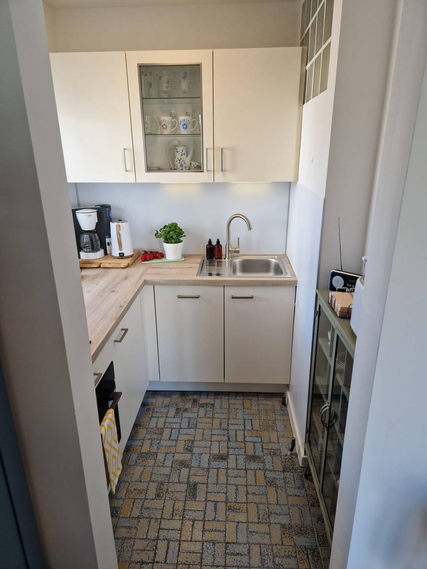 Die stilvoll eingerichtete 1-Zimmer-Ferienwohnung befindet sich im Erdgeschoss und bietet Platz für max. 3 Personen. Die Wohnfläche der ca. 26 m² großen Unterkunft verteilt sich auf ein Wohn-/Schlafzimmer sowie auf eine separate Küche, dem Badezimmer und einem Flur. Das Wohn- / Schlafzimmer ist mit einem Doppelbett 160 x 200 cm und einem gemütlichen Sofa ausgestattet, das man auch zum Bett ausziehen kann (Schlafgröße 140 x 190 cm) , auch ein Kleiderschrank und der Esstisch finden hier Platz. Vom Hauptraum aus, gelangt man auch in den traumhaften und geschmackvoll gestalteten Garten (280 m²), dem Bereich zum Relaxen und der Überdachten Terrasse (7 m²) mit gemütlichen Loungemöbeln. Die separate Küche ist u.a. mit 2 Kochfeldern, Backofen, Kühlschrank, Gefrierfach, Mikrowelle, Toaster und Kaffeemaschine ausgestattet.