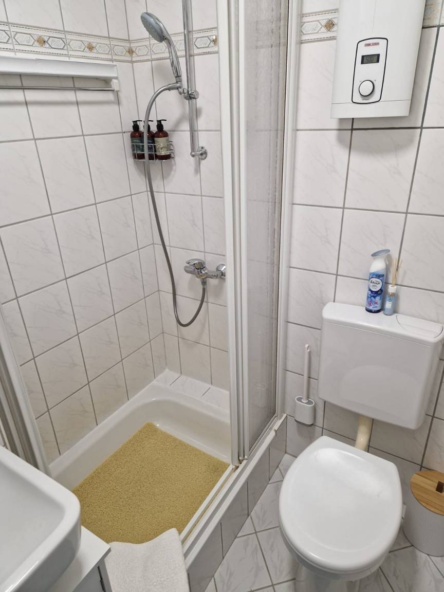Einkaufsmöglichkeiten befinden sich in der Nähe: Es sind ein Rewe-Supermarkt und Aldi in ca. 10 Minuten Fußweg zu erreichen.