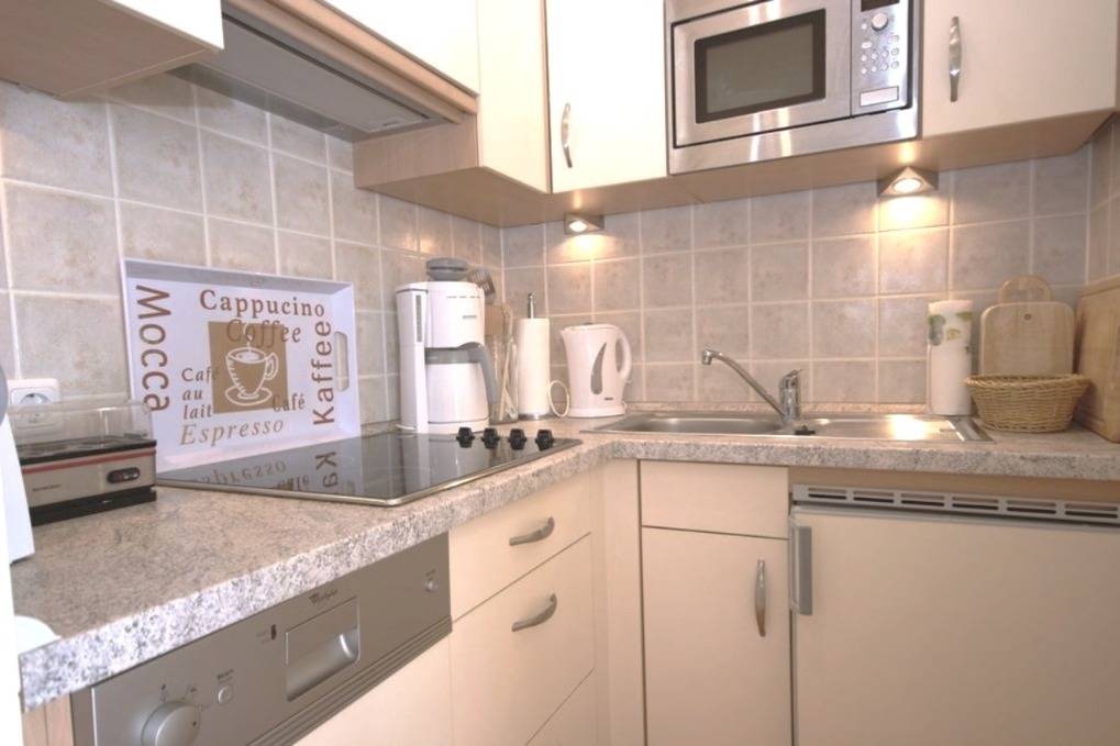 Die Küche ist mit Geschirrspüler, Cerankochfeld, Kühlschrank, Mikrogrill und allen üblichen Küchengeräten sehr gut ausgestattet.