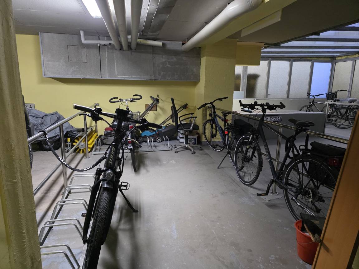 Die Wohnung ist mit Korkboden/ Fliesen ausgelegt. Die Schlafzimmer haben Verdunklungsrollos. Ein Parkplatz befindet sich am Haus, Fahrradstellplatz in der Garage. Ein Fahrstuhl ist vorhanden. Das Rauchen ist nur auf dem Balkon gestattet.