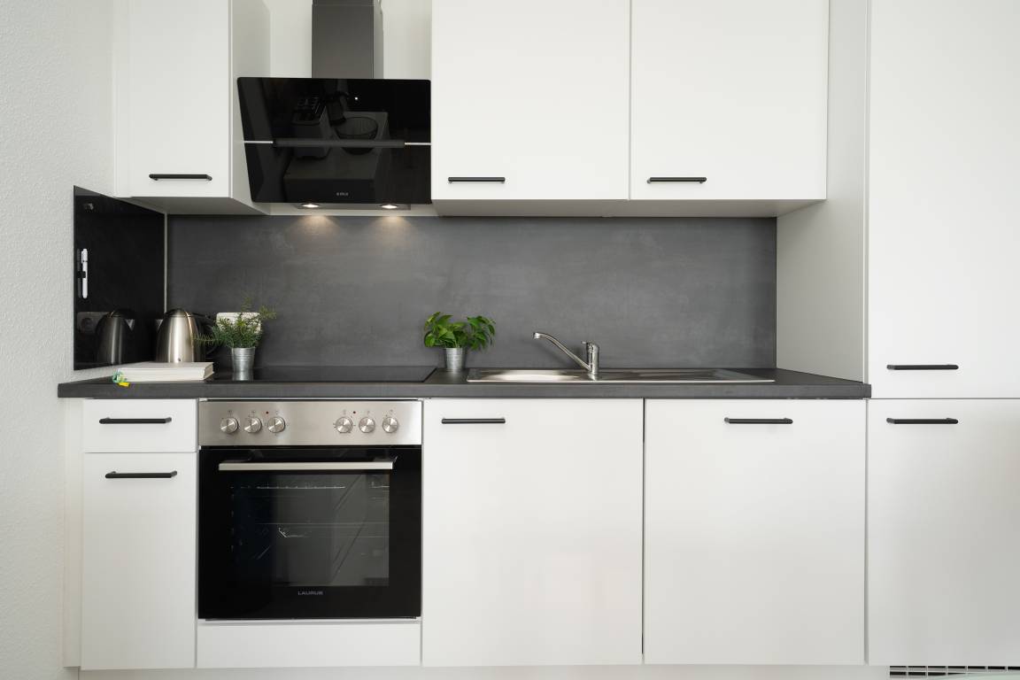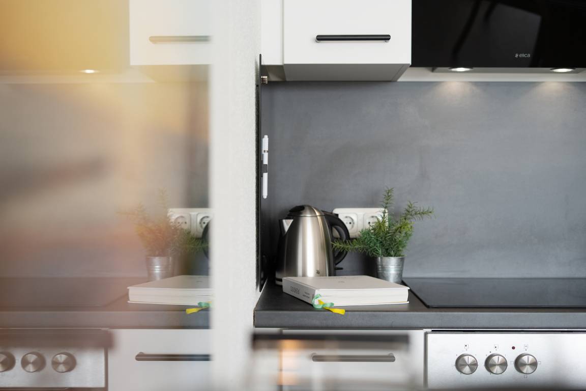 Die offene Küche bietet neben einem Cerankochfeld und Backofen auch eine Mikrowelle, Spülmaschine, Kaffeemaschine, Wasserkocher und Toaster – hier lässt sich bequem für die ganze Familie kochen. Der Essplatz schafft ein geselliges Ambiente für gemeinsame Mahlzeiten.