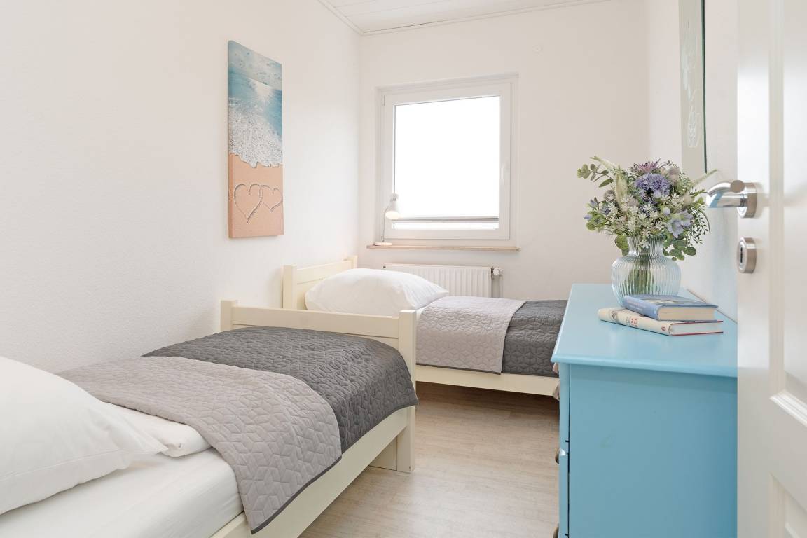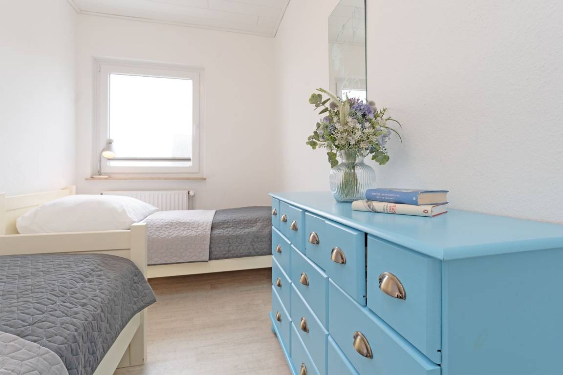 Schlafzimmer 3: 2 Einzelbetten (2x 90x200 cm), Kommode, Verdunklung
