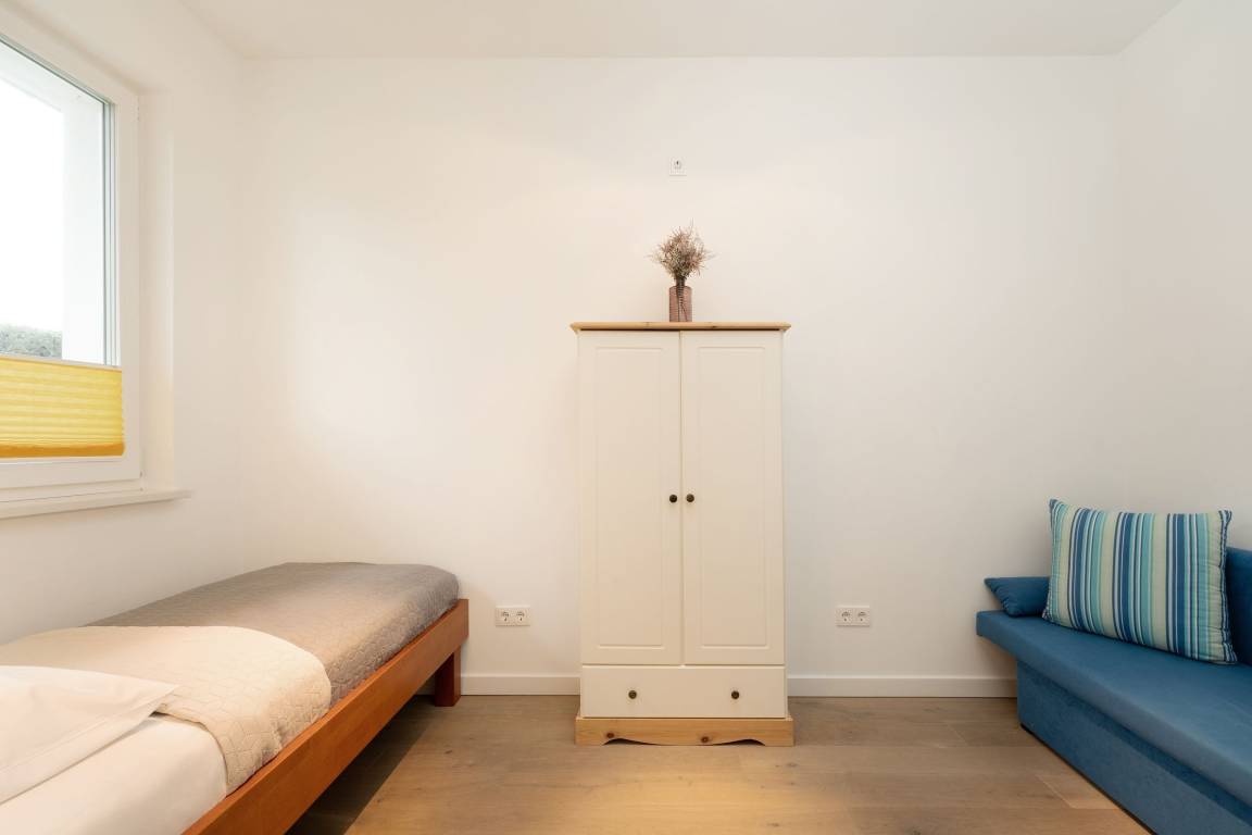Schlafzimmer 2: 1 Einzelbett (90x200 cm), 1 Schlafsofa (120x195 cm).