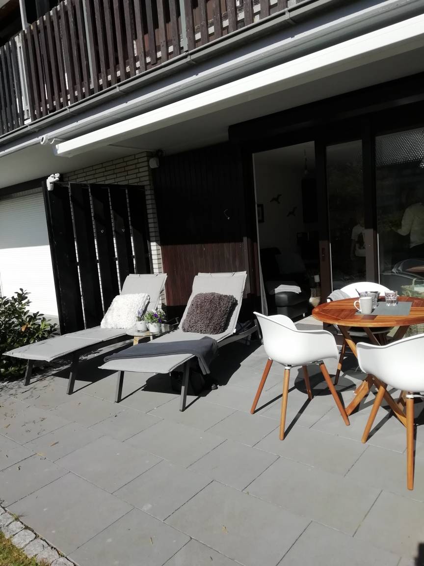 Genießen Sie auch die Zeit auf der Terrasse! Wir stellen für Sie gern Gartenmöbel und Liegen bereit.