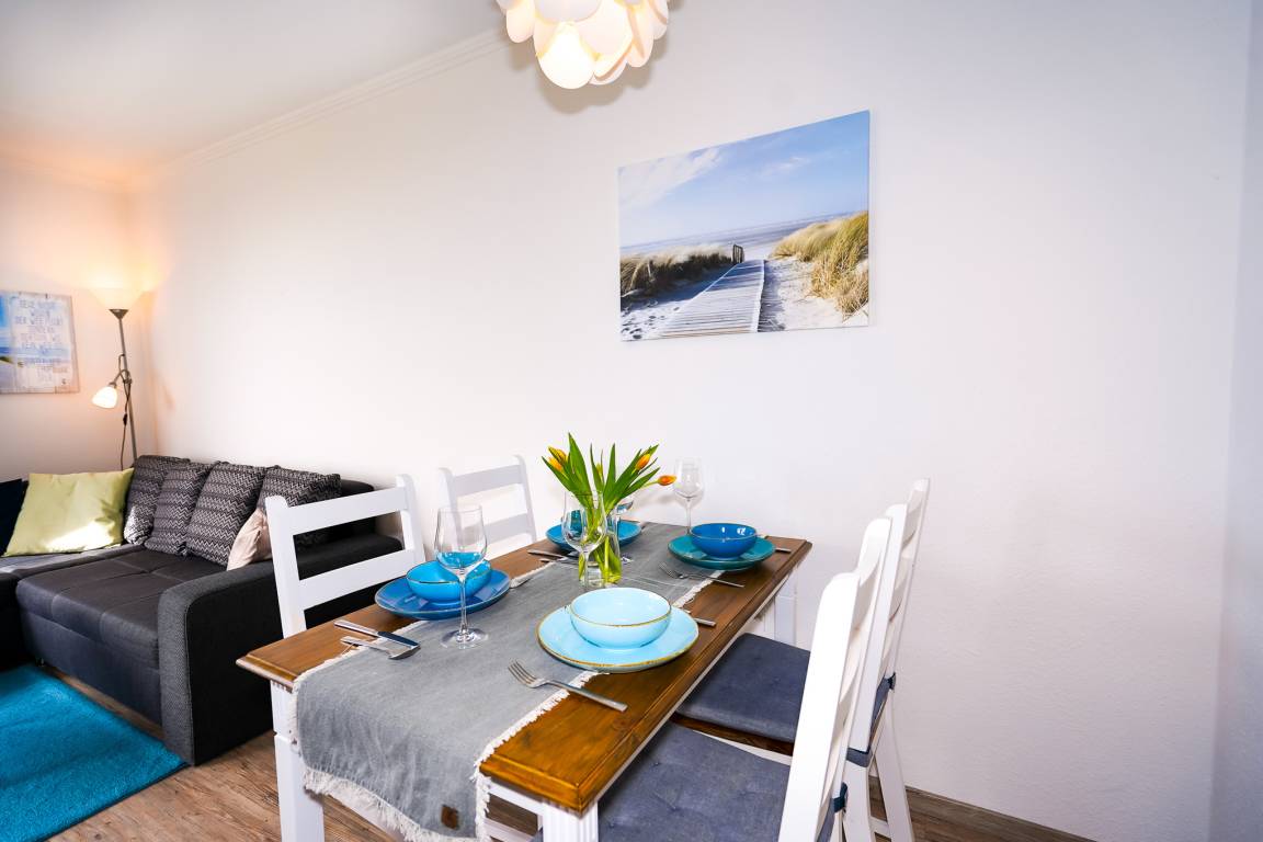 Damit Ihr Hund nicht zu kurz kommt, ist auch der Hundestrand nicht weit entfernt. Denn bis zu zwei Hunde dürfen selbstverständlich in dieser Wohnung ihren wohlverdienten Urlaub mit Ihnen genießen.