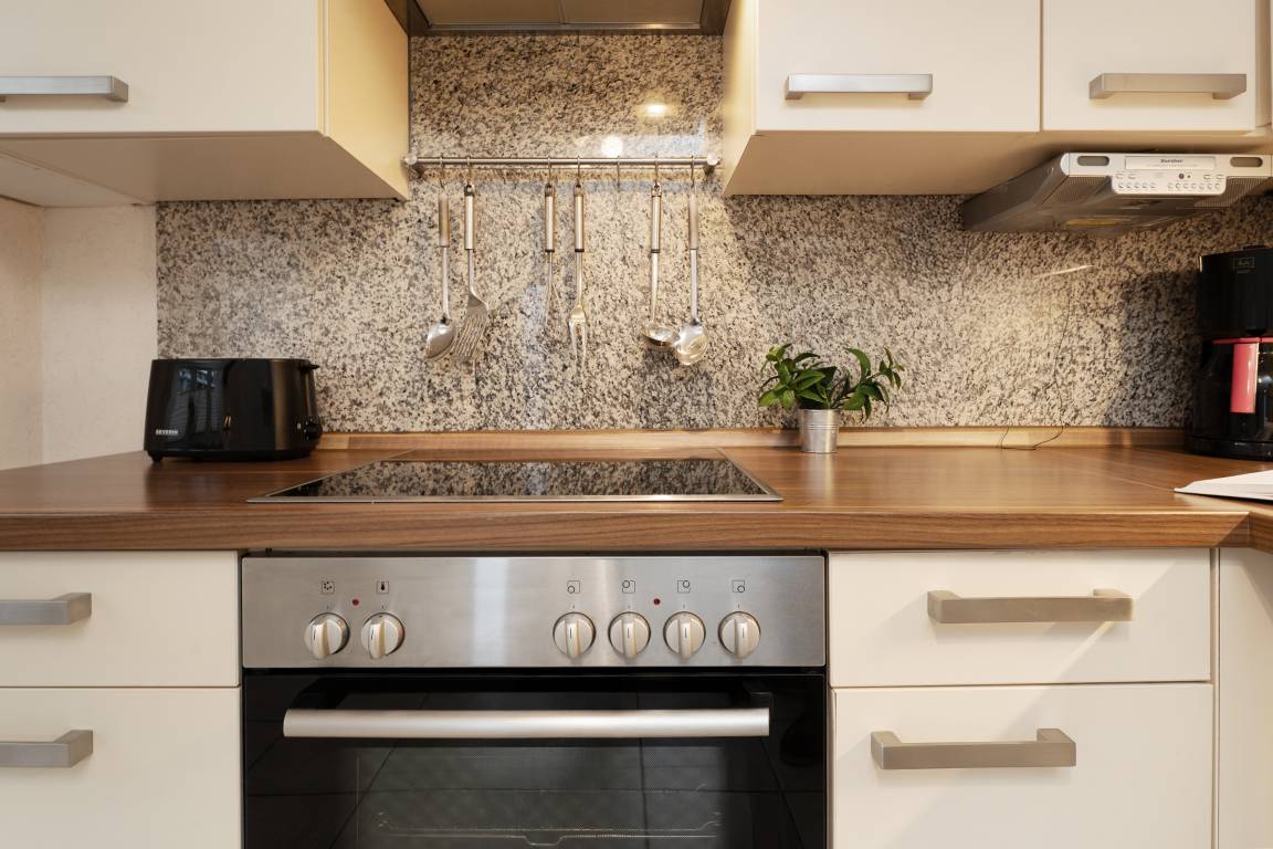 „Die Lage der Wohnung ist der größte Pluspunkt. Einrichtung ist größtenteils gut. Die Küche dürfte mal auf den neuesten Stand gebracht werden. Die Abzugshaube ist extrem laut. Das Kochgeschirr und -besteck (Pfannenwender, Nudelzange usw.) sieht zum Teil nicht mehr schön aus. Liegt vielleicht auch an der Spülmaschine, diese ist sehr verkalkt, sodass sie nicht richtig reinigt und Rückstände auf dem Geschirr bleiben.“