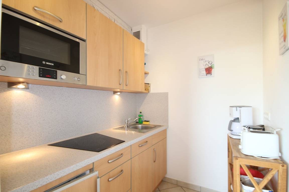 Die Küche ist mit 3 Kochplatten, Grillmikrowelle, Kühlschrank und Spülmaschine sowie allen erforderlichen Küchengeräten gut ausgestattet.