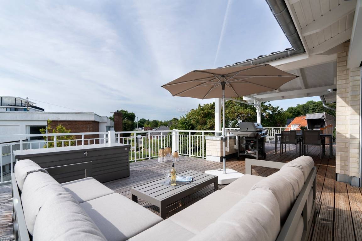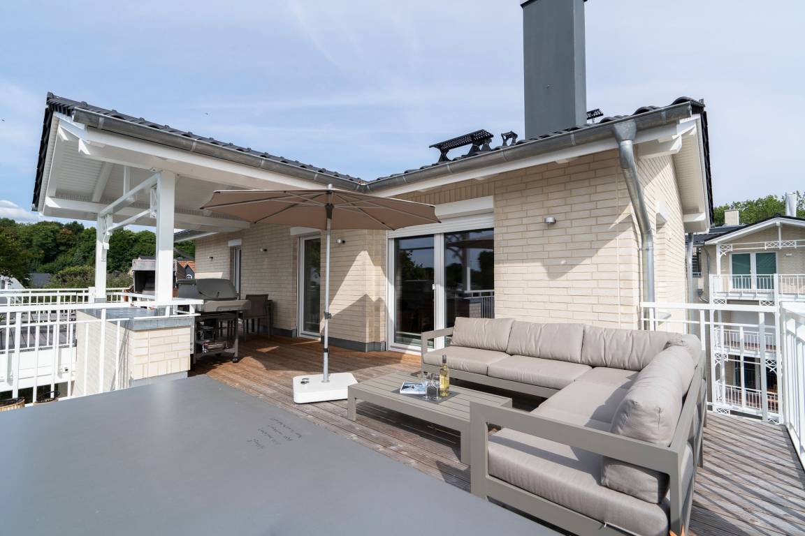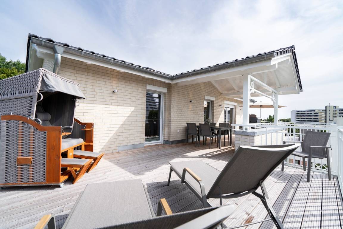 Verbringen Sie die schönste Zeit des Jahres in diesem luxuriösen Penthouse am Kurpark. Die 3-Zimmer-Wohnung verfügt über ca. 57 m² Wohnfläche, eine eindrucksvolle 60 m² große Dachterrasse mit Strandkorb und ist für bis zu 5 Personen geeignet.