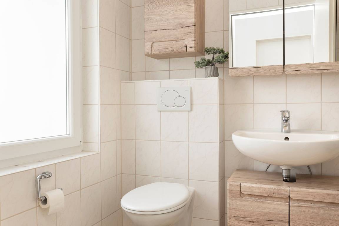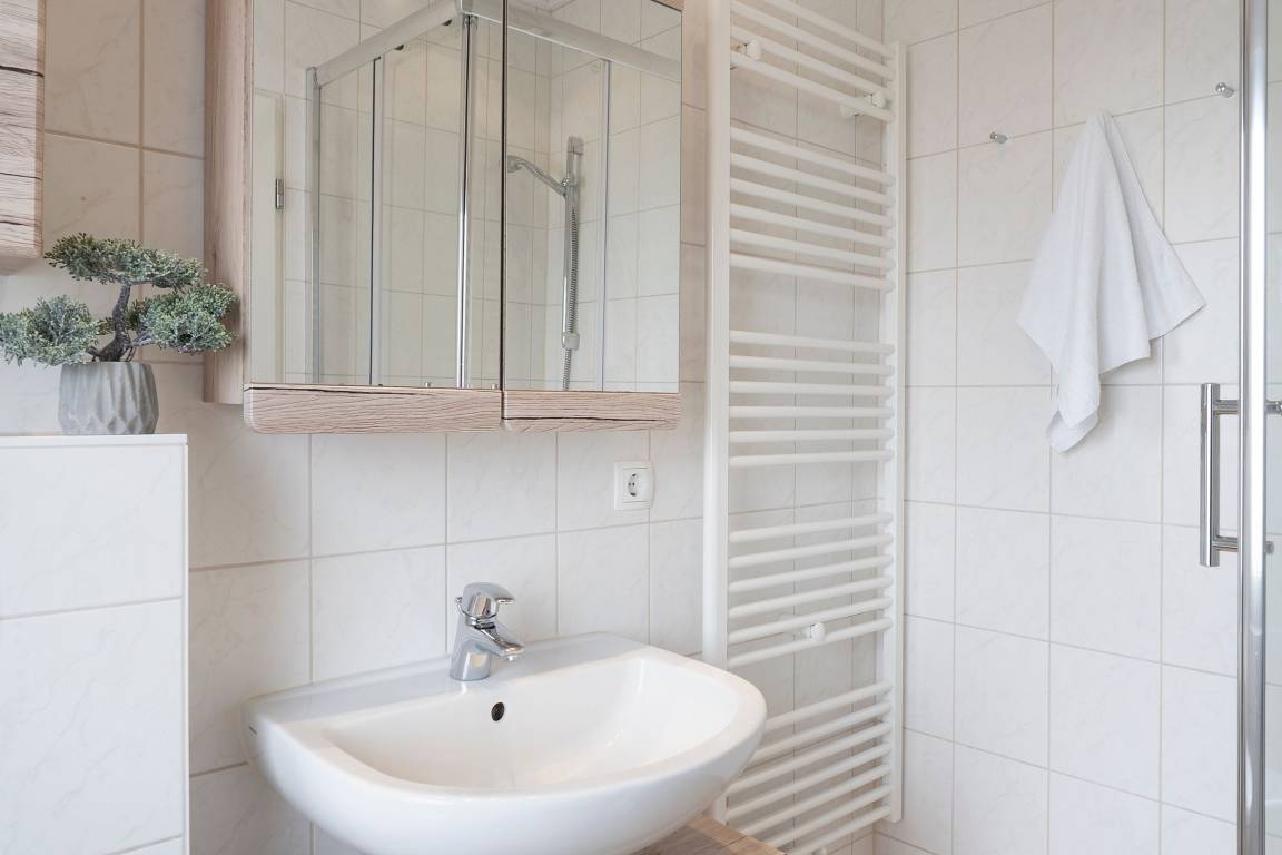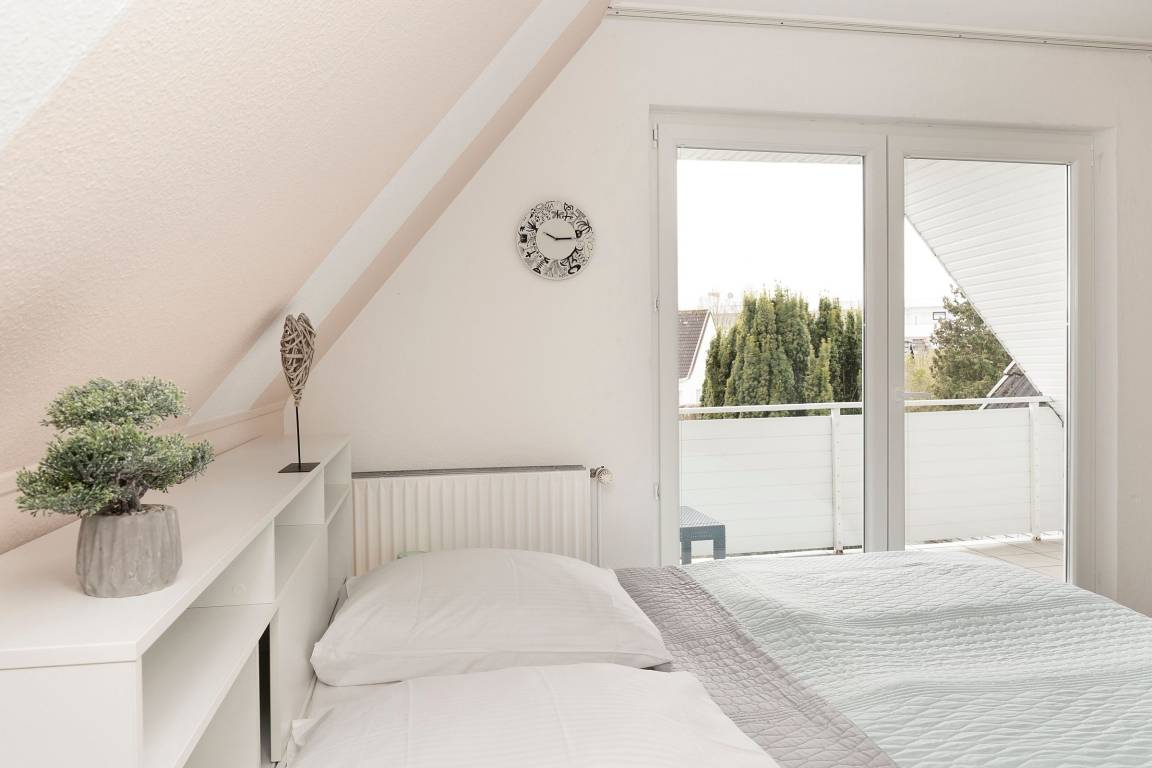 Der geräumige Wohnbereich mit offener Küche bietet genügend Platz für alle Mitreisenden und lädt zu gemeinsamen Spiele- oder TV-Abenden ein. Drei Schlafzimmer und zwei moderne Bäder, eins mit Dusche und das andere mit Badewanne, sorgen für ein Rundumwohlgefühl. Die beiden Schlafzimmer im Obergeschoss verfügen über je ein Doppelbett (2x 90x200cm). Weitere Schlafplätze bietet das Schlafzimmer im Erdgeschoss mit zwei Einzelbetten (je 100x200cm). Vom Schlafzimmer in der 1.Etage gelangen Sie auf den überdachten Balkon. Außerdem verfügt dieses Ferienhaus über eine großzügige Südost-Terrasse mit Gartenmöbeln und Lounge-Bereich, der perfekte Ort, um einen ereignisreichen Urlaubstag bei einem Glas Wein ausklingen zu lassen.