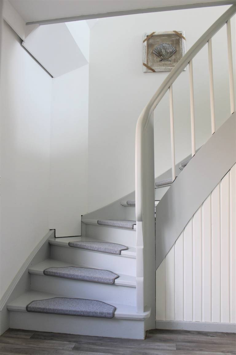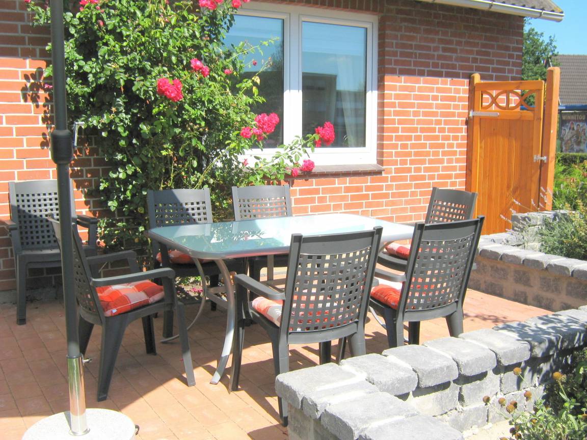 Vom Wohnbereich aus haben Sie direkten Zugang zur möblierten Terrasse sowie zum Garten. Im Erdgeschoss befinden sich außerdem ein Tageslicht-Duschbad mit WC, Dusche und einer Waschmaschine sowie eins der fünf Schlafzimmer. Dieses Schlafzimmer ist mit einem Doppelbett, einer Kommode sowie einer Einbauschrankwand versehen. Über die Treppe gelangen Sie in die erste Etage: Hier befindet sich ein weiteres Doppel-Schlafzimmer sowie ein Schlafzimmer mit einem Etagenbett (auch für Erwachsene geeignet) und zwei geräumige Einzelzimmer. Die beiden Einzelzimmer verfügen zusätzlich über einen Kleiderschrank. Im Doppelbettzimmer befindet sich ebenfalls ein großer Kleiderschrank und im Etagenbettzimmer finden Sie genug Platz in einem Schrank und zwei Kommoden . Ein weiteres Tageslicht-Duschbad mit WC ist hier vorhanden.