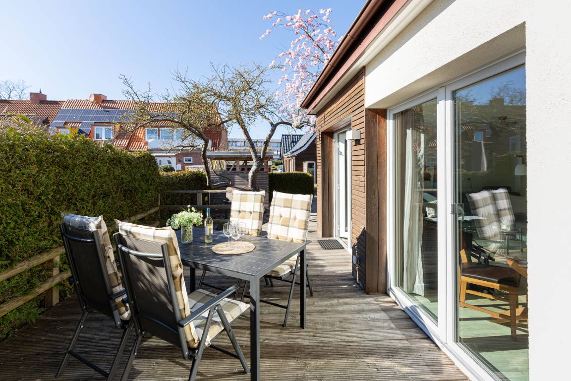 Hochwertig eingerichtet und in unmittelbarer Hauptstrandnähe gelegen, direkt hinter dem Deich, unweit der Seebrücke, erholen Sie sich in unserer "Wohlfühl-Oase", dem Strandhaus mit Bungalow, in der Königsberger Allee 8.