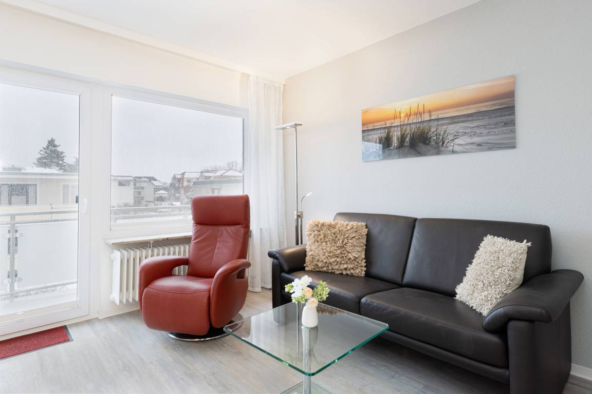 In dieser hellen Balkon-Ferienwohnung im ersten Obergeschoss kannst du ganzjährig strandnah deinen Ostsee-Urlaub verbringen.