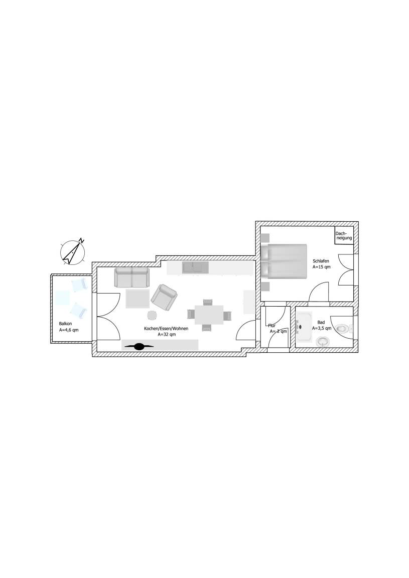 52 m² Ferienwohnung ∙ 1 Schlafzimmer ∙ 2 Gäste