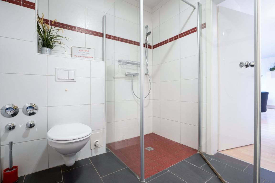 „Schöne Whg., gut aber nicht hervorragend ausgestattet. Dazu fehlen mir z. B. Radiowecker, Eierkocher, Eiswürfelform. WLAN ist inzw. in der Preisklasse Standard. Große Dusche. Abflussabdeckung liegt nur lose auf. Evtl. Verletzungsgefahr vor allem für Kinder. Küchenschränke werden ansch. nicht gereinigt“