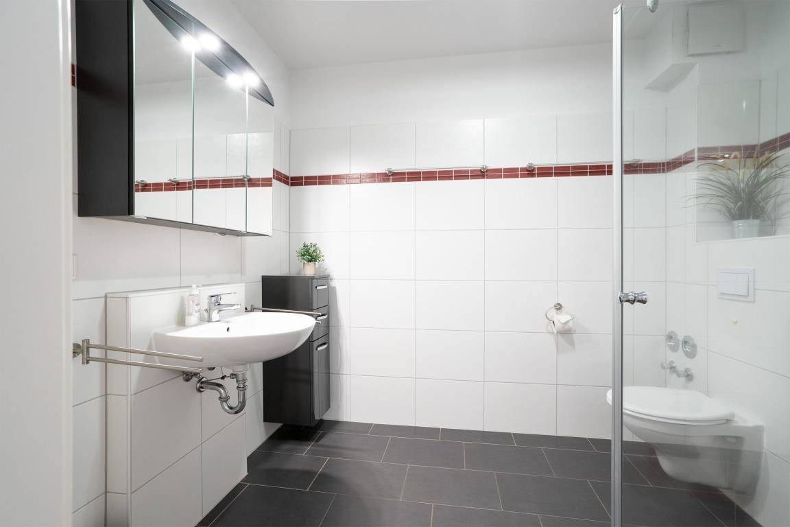 „Wohnung war super, alles vorhanden. Bäcker gleich unten im Haus. Was uns gestört hat war der Fahrradkeller, man muss das Fahrrad auf einer Schiene die Treppe runter fahren und wieder hoch. Das ist sehr anstrengend. Die roten Vorhänge sind etwas irritierend.“