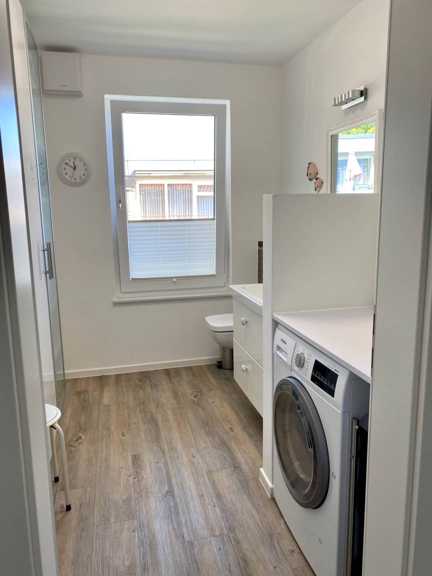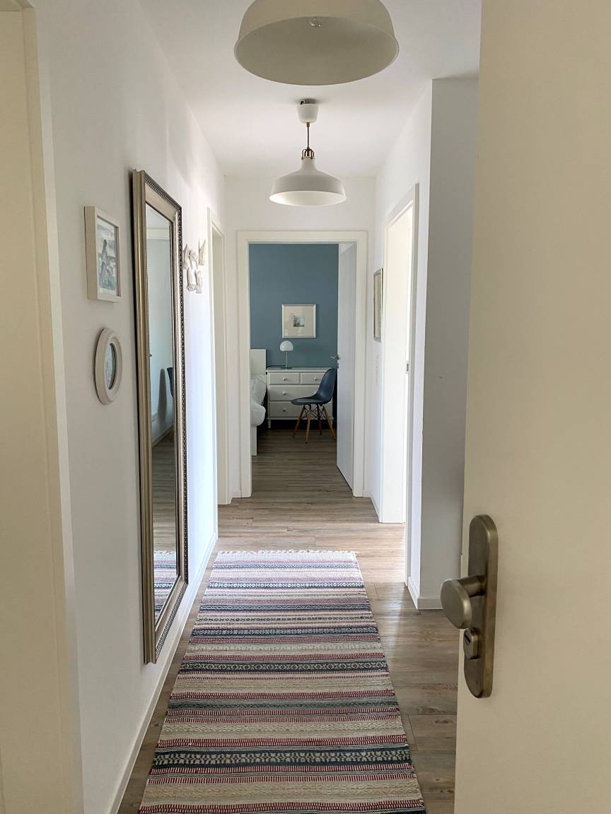 Der großzügige Wohn-, Ess- und Küchenbereich geht harmonisch ineinander über. Des Weiteren verfügt die geschmackvoll eingerichtete Wohnung über 2 Schlafzimmer mit je einem Doppelbett. Neben einem schönen Gäste-WC gibt es ein helles & freundlich gestaltetes Badezimmer mit Dusche, Wanne und WC. Ihnen steht zusätzlich zur Verfügung: ein Waschtrockner, Handtuchheizkörper, Wäscheständer, Bügelbrett und Bügeleisen, Staubsauger, Kinderhochstuhl und Reisebett, Carport für PKW, Abstellraum für Fahrräder. Eine Fußbodenheizung sorgt für wohlige Wärme an kalten Tagen. Ein kostenloser W-Lan Anschluss ist vorhanden.