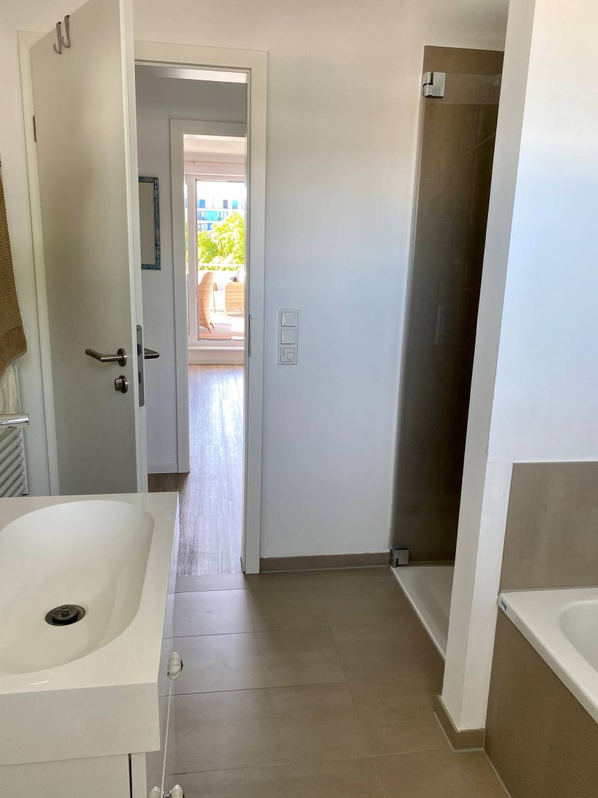Die 105 qm große, lichtdurchflutete Penthouse-Wohnung im Dachgeschoss ist für bis zu 4 Personen (der angegebene Preis bezieht sich immer auf 2 Erwachsene und 2 Kinder, extra Personen können ggf. auf Anfrage dazu gebucht werden) ausgelegt. Sie erreichen die Wohnung bequem mit dem Fahrstuhl.