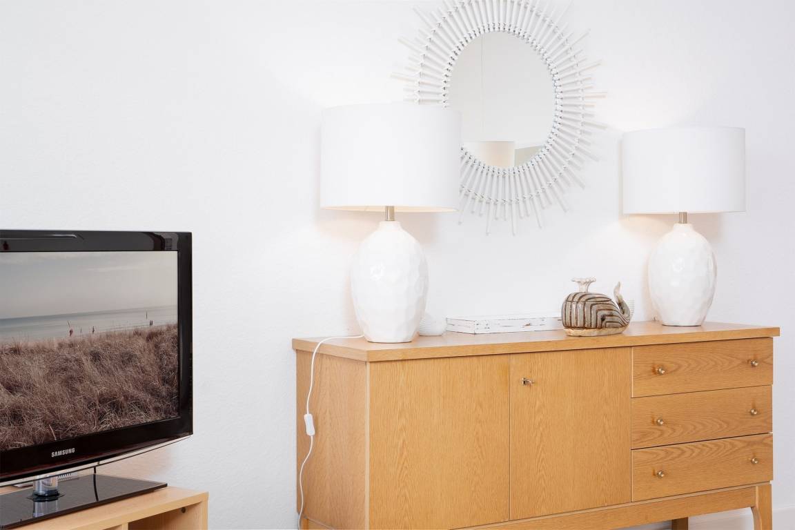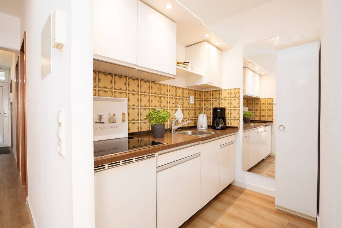 Die Wohnung hat ein geräumiges Wohnzimmer in dem ein Flatscreen TV für Unterhaltung sorgt. Die gut ausgestattete Küche mit Herd (Ceranfeld mit Touch Screen), Kaffeemaschine, Toaster, Wasserkocher, Kühlschrank mit Gefrierfach, Töpfe, Pfannen, Geschirr, Besteck, etc. lässt keine Wünsche offen. Nach einem erlebnisreichen Urlaubstag sorgt ein Schlafzimmer mit einem Doppelbett (2x 90x200 cm) sowie ein weiteres Einzelbett (80x200 cm) in einem separatem Schlafzimmer für Entspannung und Ruhe. Beide Schlafzimmer verfügen über Rollläden. Ein helles, modernes Bad mit einer fast ebenerdigen Dusche und WC wird Sie begeistern.