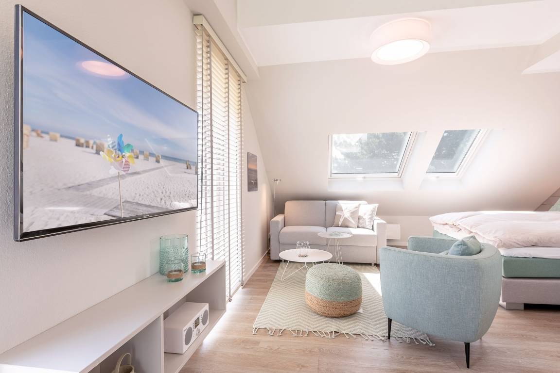 „Modernes, kleines Appartment. Sehr hell und wirkt größer durch die hohe Decke. Zum Frühstück herrlich auf dem Balkon. Die Möglichkeit Jacken aufzuhängen ging nicht, da nur wenig Platz im Minischrank. Wir kommen gerne für ein paar Tage wieder. Bis dahin Moin, Moin“