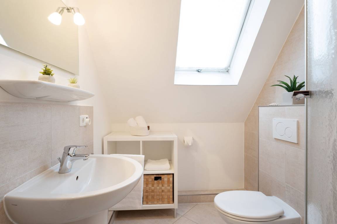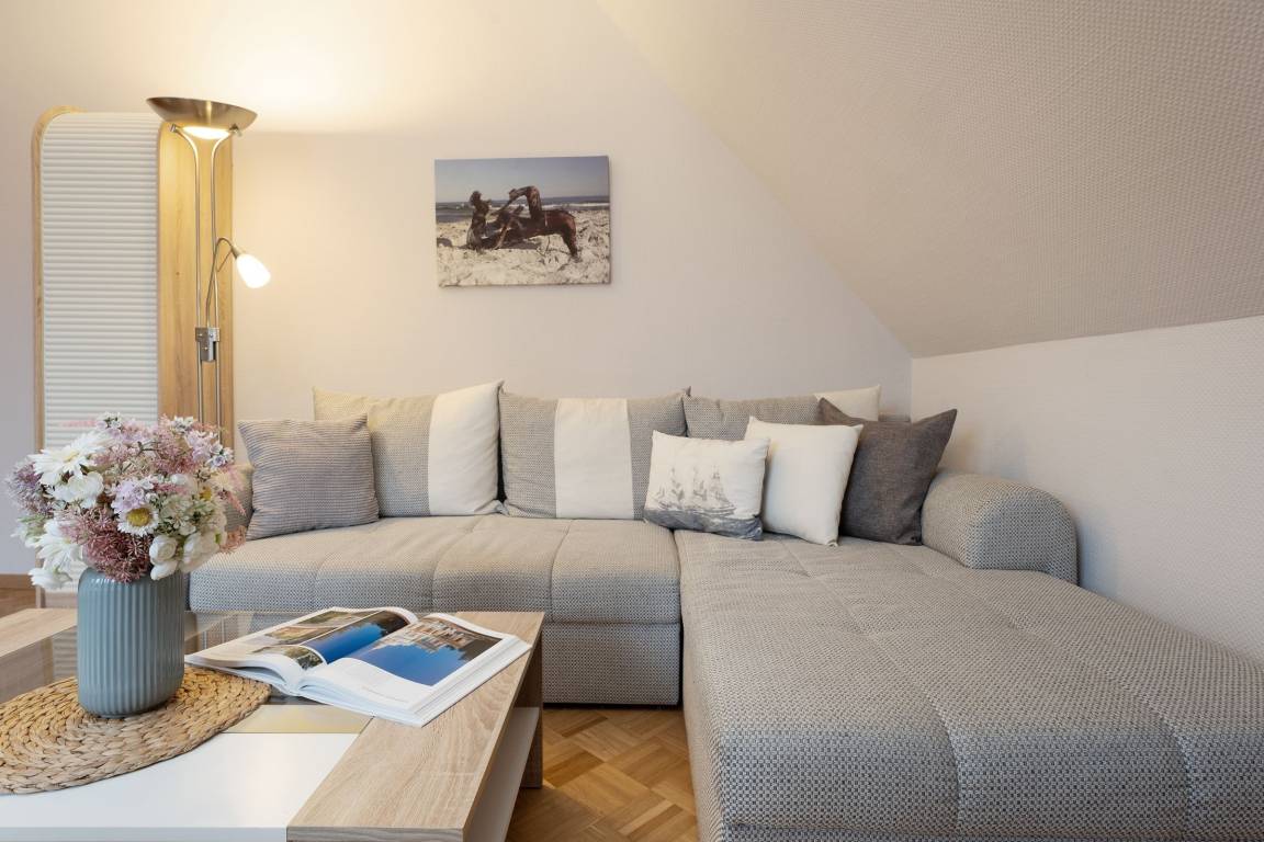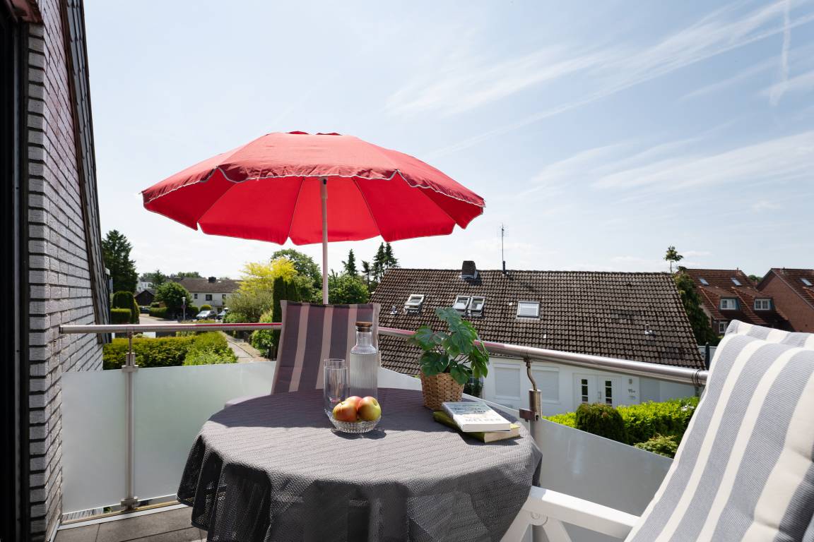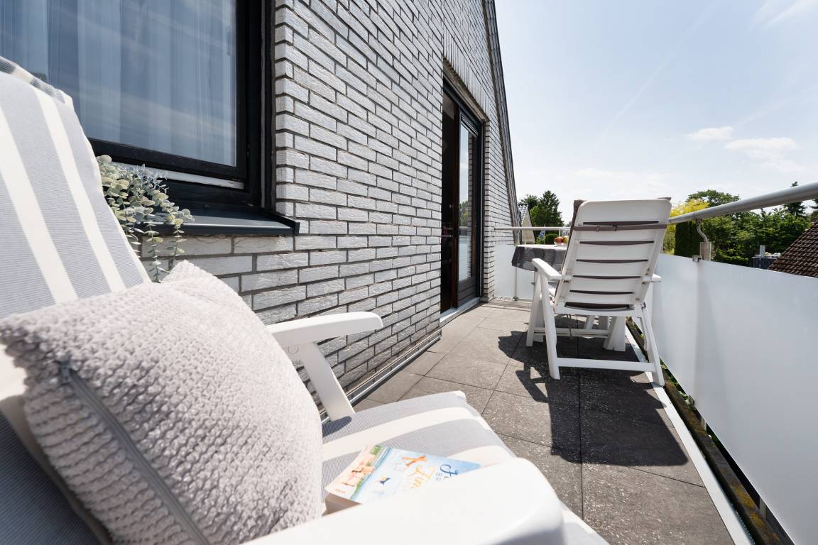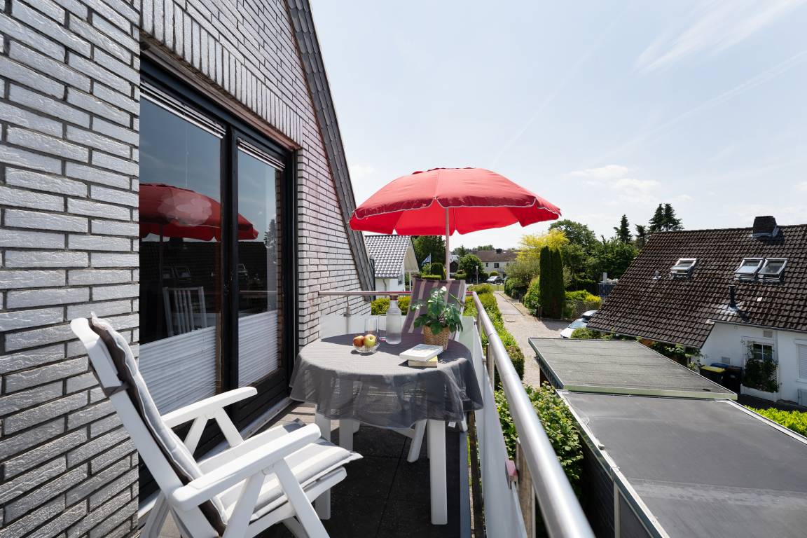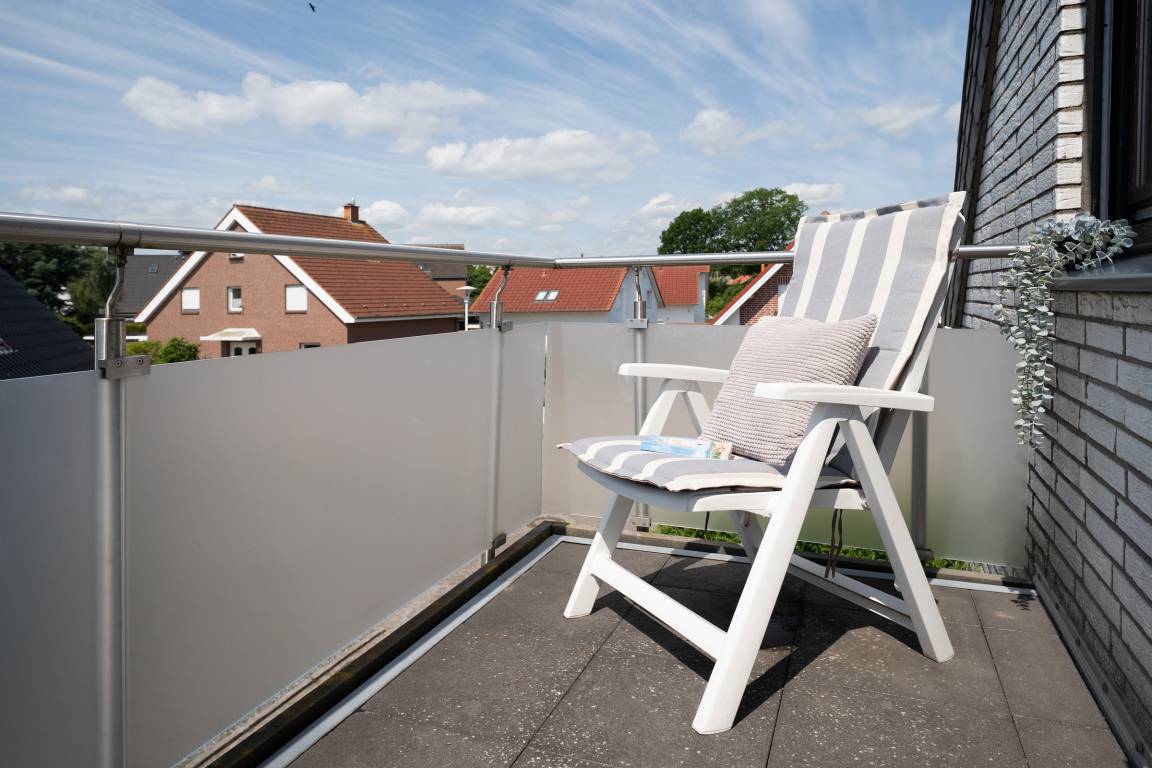 Die integrierte Küchenzeile überzeugt mit hochwertiger Ausstattung wie einem Backofen in angenehmer Arbeitshöhe, sowie einer Spülmaschine. Machen Sie es sich nach langen Strandtagen auf dem Ecksofa mit Schlaffunktion (Liegefläche 150x200cm) bequem, ein Flatscreen-TV sorgt für Unterhaltung. Das geschmackvolle Tageslichtbad in hellen Naturtönen bietet mit schöner Dusche, WC, Waschtisch und beheizbarem Handtuchhalter viel Komfort. Das separate Schlafzimmer ist mit neuem komfortablen Boxspringbett (180x200cm) und Kleiderschrank ausgestattet, durch Außenjalousien ist Verdunklung für die Nacht gewährleistet. Vom Wohnbereich aus haben sie einen direkten Zugang auf den großen, möblierten Balkon mit Südwestausrichtung, freuen Sie sich auf viel Sonnenschein und eine schöne Prise Ostseeluft!