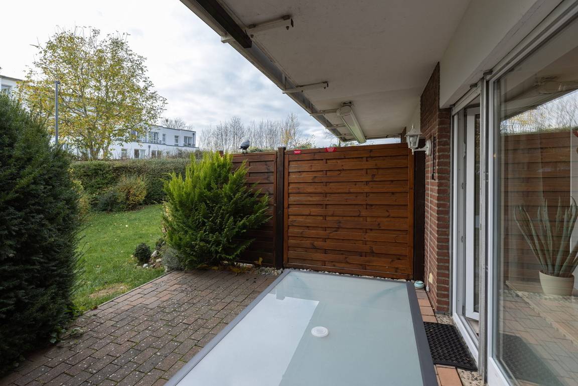 Das Appartement ist die untere Wohnung einer Reihenhaus ähnlich-gestalteten Anlage.