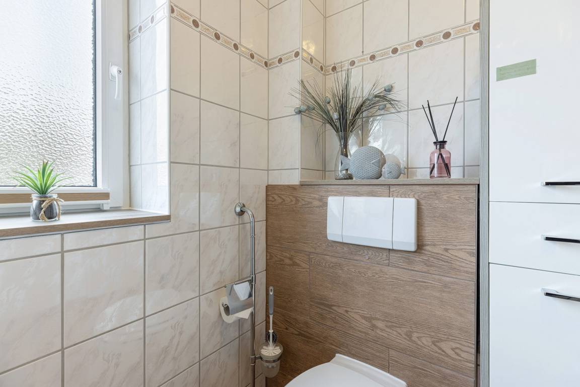 Die Wohnung befindet sich im EG, aufgrund der Hanglage müssen allerdings mehrere Stufen (ca. 10-15) gegangen werden. Über einen Eingang gelangen Sie in Ihr 60 qm großes Appartement, in dem sich alle Räume auf einer Ebene befinden.