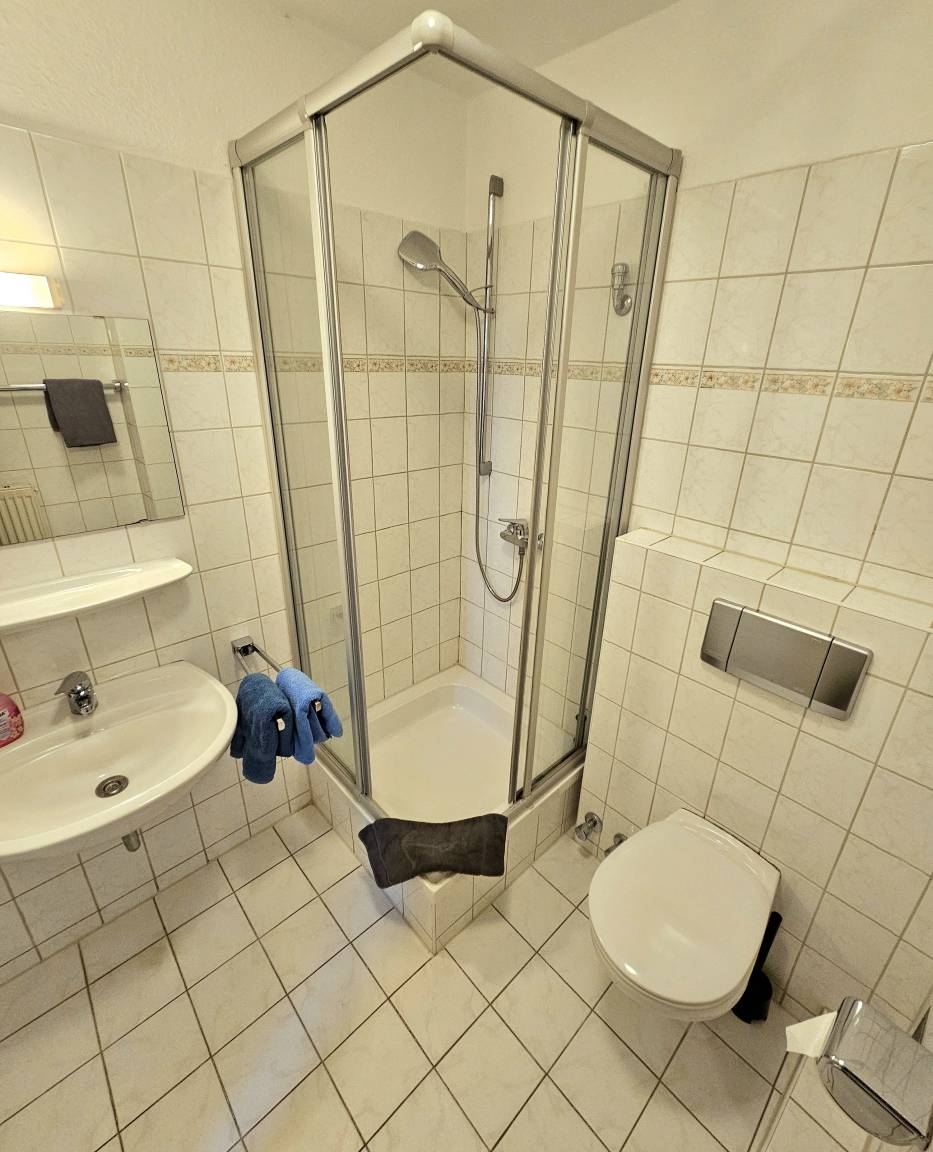 Die Wohnung "Nr. 8" auf dem "Grömitzer Pappelhof" liegt in der 1. Etage und bietet Platz für bis zu 4 Personen. Die Wohnfläche der ca. 60 m² großen Ferienunterkunft verteilt sich auf ein Wohn- / Esszimmer, ein separates Schlafzimmer, einen Flur mit zwei Schlafgelegenheiten und auf ein Badezimmer. Das Wohn- / Esszimmer ist mit einer gemütlichen Sitzecke, Flachbild-TV, einem Esstisch und einer offenen Küchenzeile versehen. Die Küche ist u.a. mit 4-Plattenherd, Kaffeemaschine und weiteren Küchengeräten versehen. Das Schlafzimmer ist mit einem Doppelbett (getrennte Matratzen - Maße 0,90 x 2,00 m) und einem großen Kleiderschrank versehen. Im Flur befinden sich zwei Einzelbetten (0,90 x 2,00 m). Das Badezimmer ist mit WC und Dusche versehen.