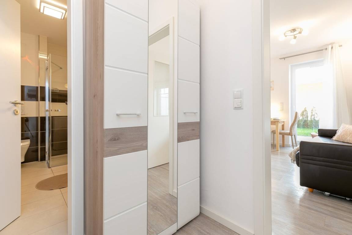 „Für einen Kurzurlaub war die Wohnung ok. Im kleinen Kleiderschrank der im Eingangsbereich stand, wurde der Staubsauger untergebracht, was wir nicht hygienisch fanden. Im Bad war ausreichend Ablagemöglichkeit. Für den Platz den die Waschmaschine einnahm, hätte man einen Besenschrank stellen können, somit hätte nicht in jeder Ecke, Besen, Auflagen usw. gequetscht werden müssen. Die Terrasse mit Strandkorb, Tisch, Stühle und Sonnenschirm war schön. Wir haben schon mehrfach bei Kraushaar gebucht und waren auch diesmal mit der Abwicklung zufrieden.“