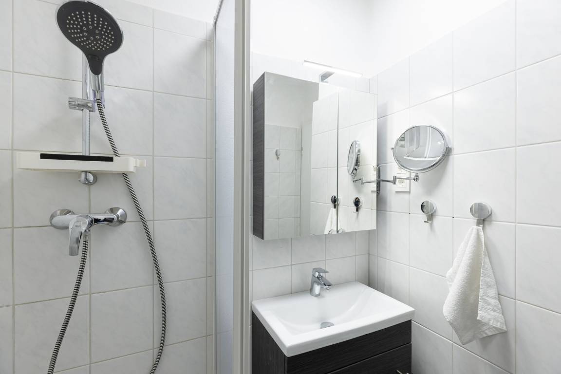 „Helle, schöne Küchen-und Wohneinrichtung. Bequemes Bett, Schöner Balkon. Das Badezimmer ist sehr klein das Waschbecken ist eher für ein Gäste WC.“