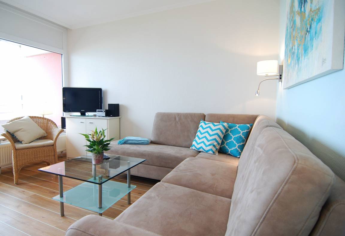 Moderne 2-Zimmer-Nichtraucherwohnung für bis zu 3 Personen in der obersten Etage mit Südbalkon und besonders schönem Seeblick. In der Kochnische befindet sich ein Esstisch für 2 Personen, weshalb diese Wohnung am besten für den Urlaub allein oder zu zweit geeignet ist. Sonderausstattung: Geschirrspüler, Mikrowelle, Telefon und Markise. Haustiere sind nicht erlaubt.