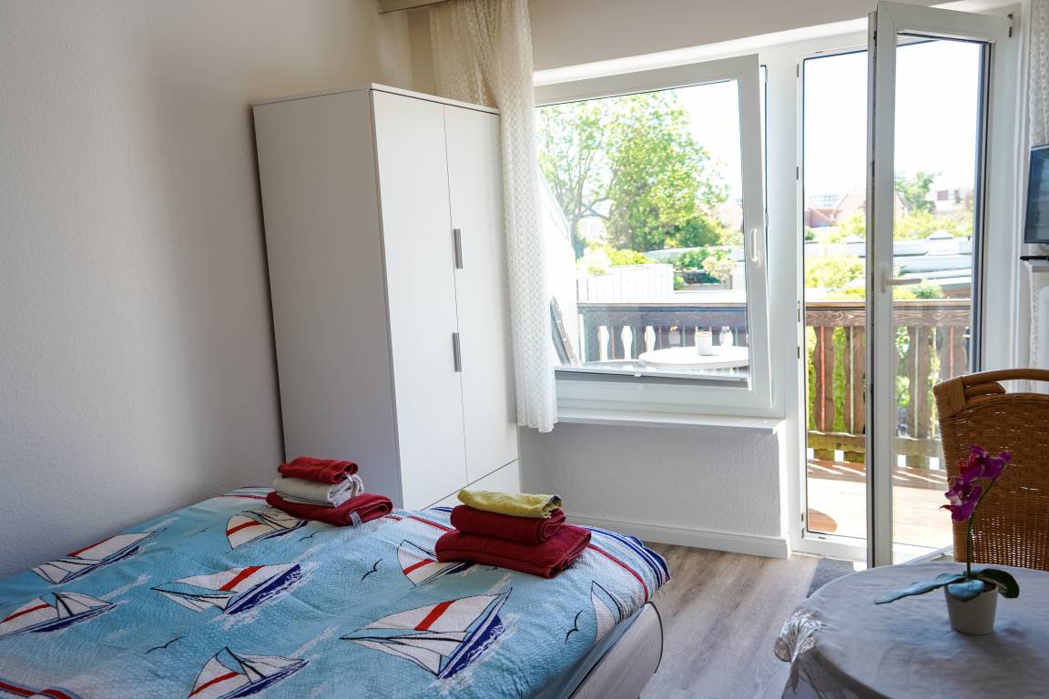 Unsere gemütliche Pension mit familiärer Atmosphäre in zentraler, strandnaher Lage, bietet Ihnen mit dem Appartement TARJA ein sehr gut ausgestattetes Balkon Appartement mit DU/WC. Das Appartement hat eine Größe von 15 qm und befindet sich im 1.OG. Auf dem Flur befinden sich ein Kühlschrank, Kaffeemaschiene und Mikrowelle. Einen Parkplatz finden Sie direkt am Haus . Und das Wichtigste: Zum Strand sind es nur ein paar wenige Meter.