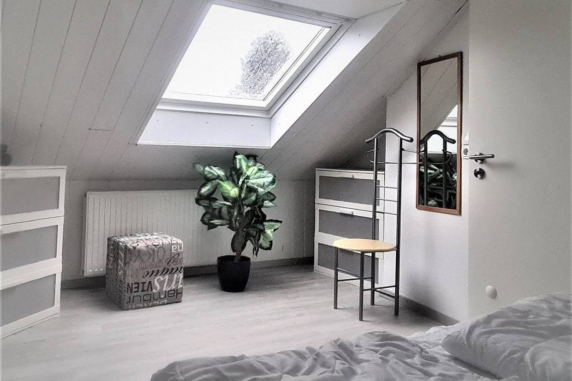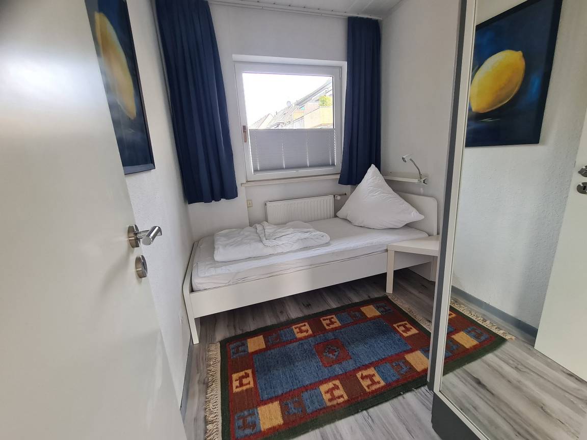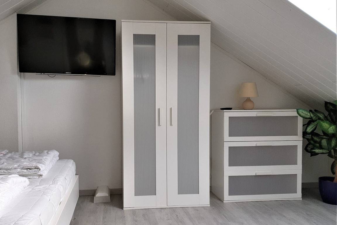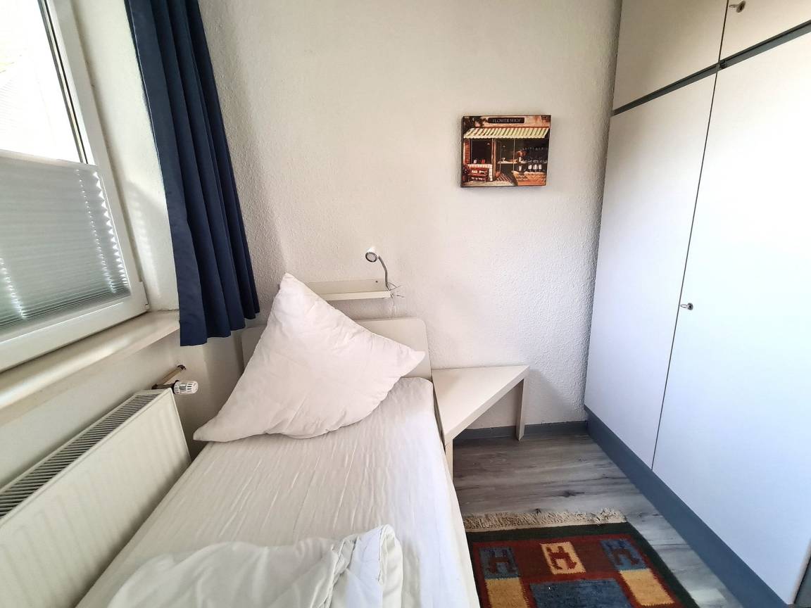 Im Erdgeschoss befindet sich ein Gästezimmer mit Einzelbett (90x200) und Kleiderschrank.