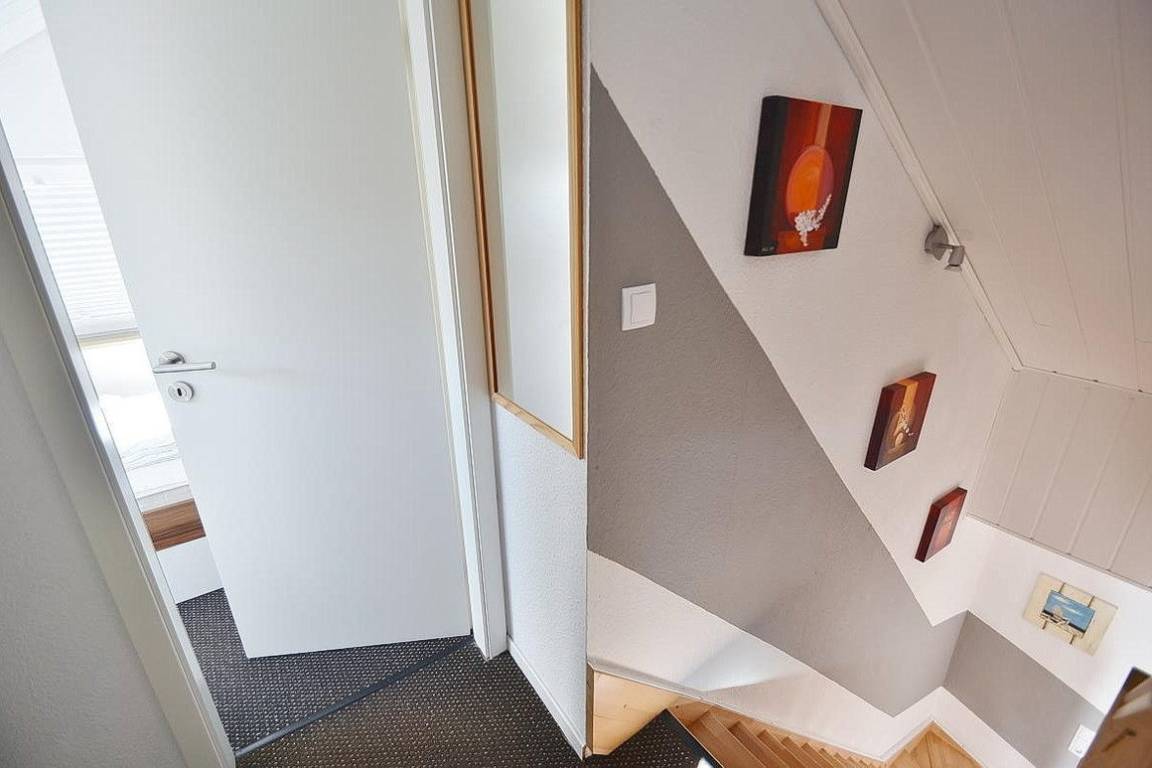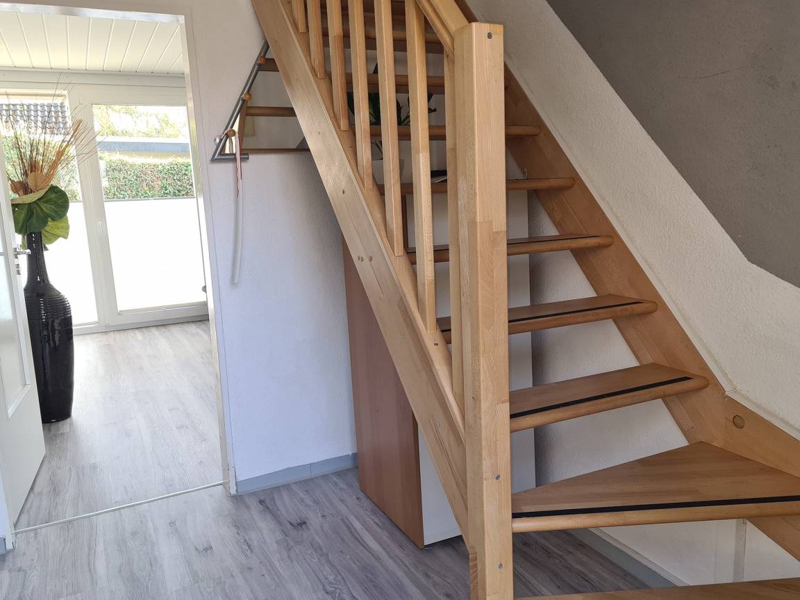 Über eine Raumspartreppe gelangen Sie ins Obergeschoss zu den Schlafräumen.