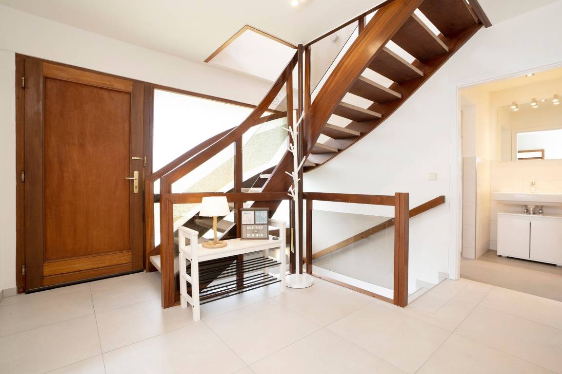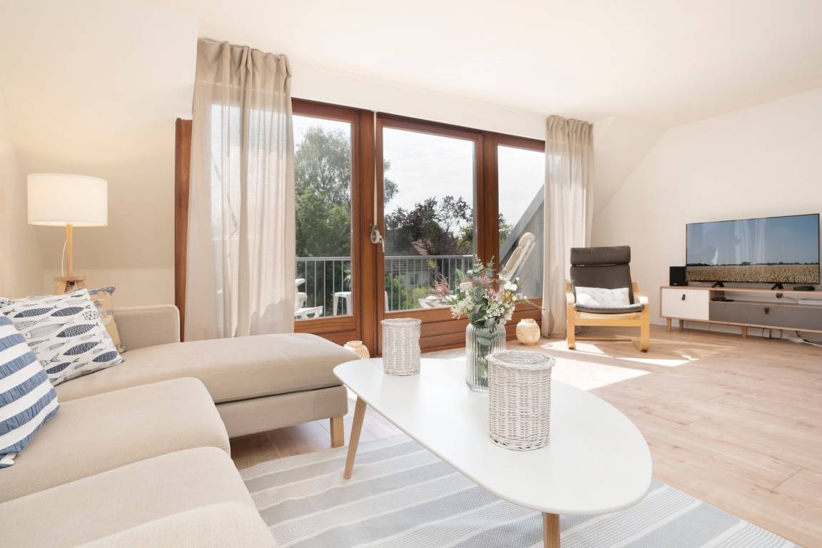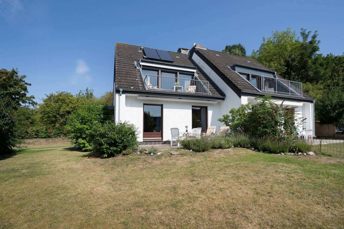 Ihr Ferienhaus bietet mit ca.100 m² Wohnfläche ausreichend Platz für bis zu 5 Personen und erwartet Sie umrahmt von einem idyllischen Garten. Die Schlafräume befinden sich im Erdgeschoss, der Wohnbereich und die Küche liegen eine Etage höher. Ein eigener Gartenbereich mit möblierter Terrasse, sowie ein großzügiger Balkon im Obergeschoss, von dem Sie sogar einen Blick auf die Ostsee erhaschen können, sorgen für Urlaubsstimmung an der frischen Luft.