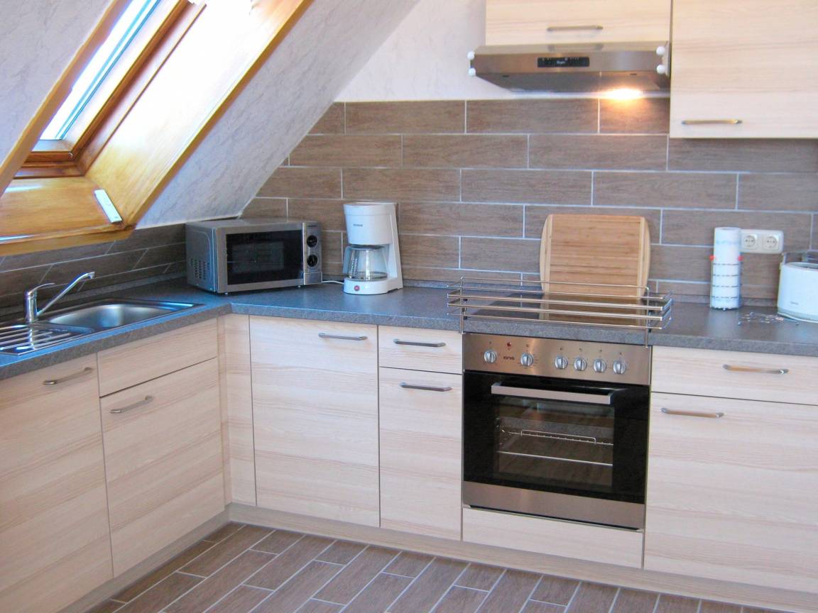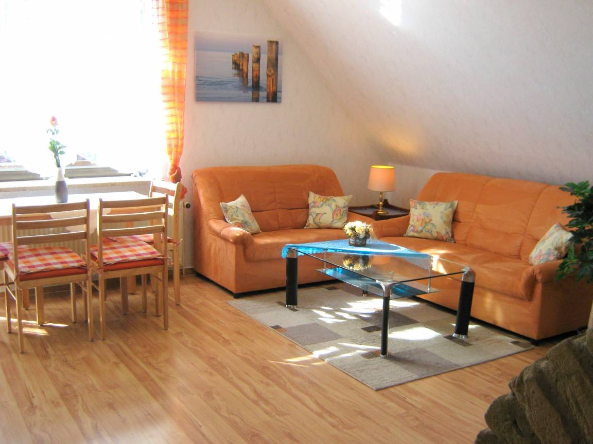 Die Wohnung Nr. 1 "Haus am Meer" im ersten Stock ist 57 m² groß und bietet Platz für bis zu vier Personen. Die gemütliche Sitzecke im Wohn- Esszimmer lädt zum Verweilen ein, während die Küchenzeile mit allen wichtigen Geräten wie 4-Platten-Herd, Backofen, Kühlschrank mit Gefrierfach, Mikrowelle und Kaffeemaschine ausgestattet ist. Das Sofa kann als zusätzliches Bett genutzt werden.
