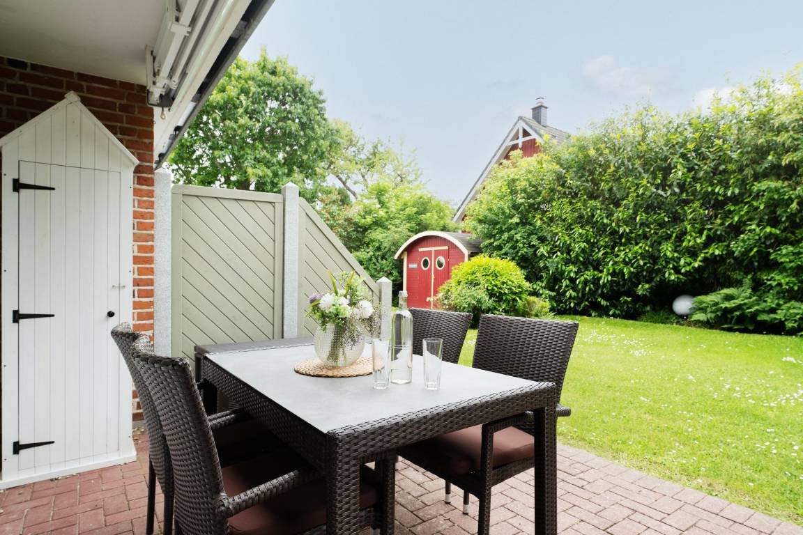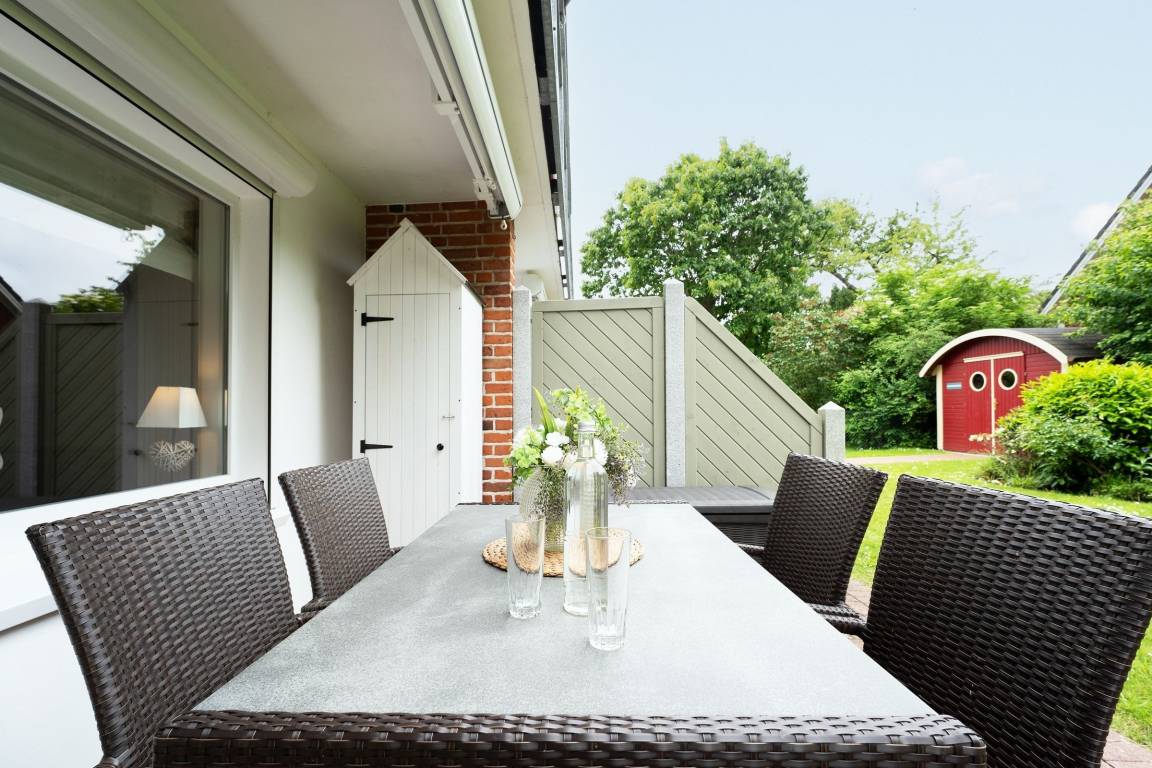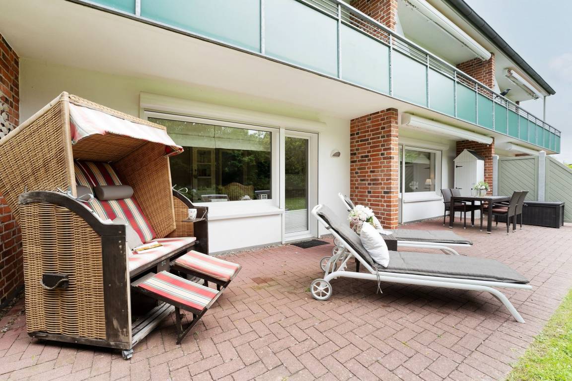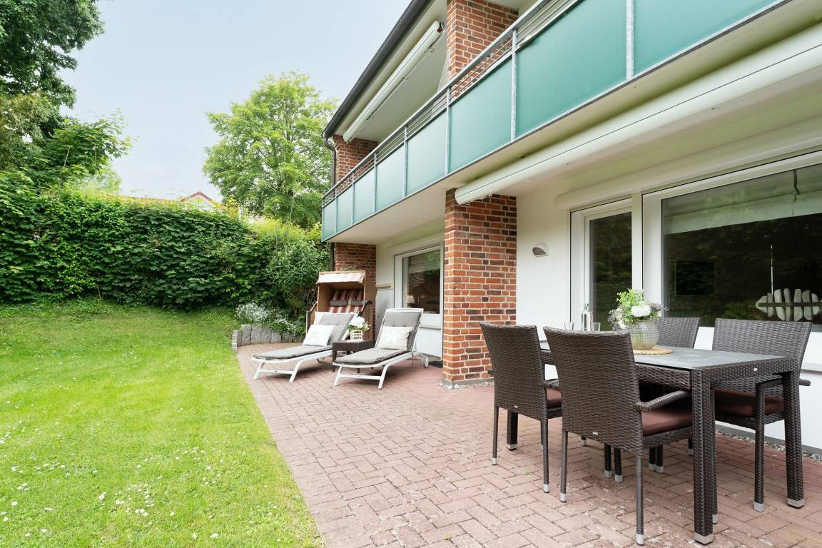 In bester Lage von Grömitz: traumhafte, ca. 65 m² große 2-Zimmer-Ferienwohnung im Erdgeschoss mit zwei Terrassen und eigenem Garten für bis zu 2 Personen.
